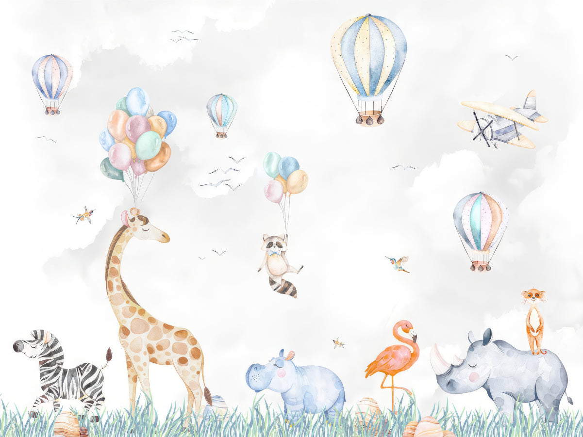 Update your child's room with our safari balloon fiesta mural, transporting the excitement of a safari camping into their bedroom. This children's room wall wallpaper features a lively pattern of safari animals and playful balloons, all painted in rich, engaging, stimulating, and engaging colours. When zebras paw and giraffes reach for the wall with their long necks, the children's room transforms into a centre of activity and delight. [The mural] is in addition to something that is a kind of ornament and a learning tool, which leads to discussions about animals, nature, and geography and is, as a whole, a deep asset to their learning and development environment.