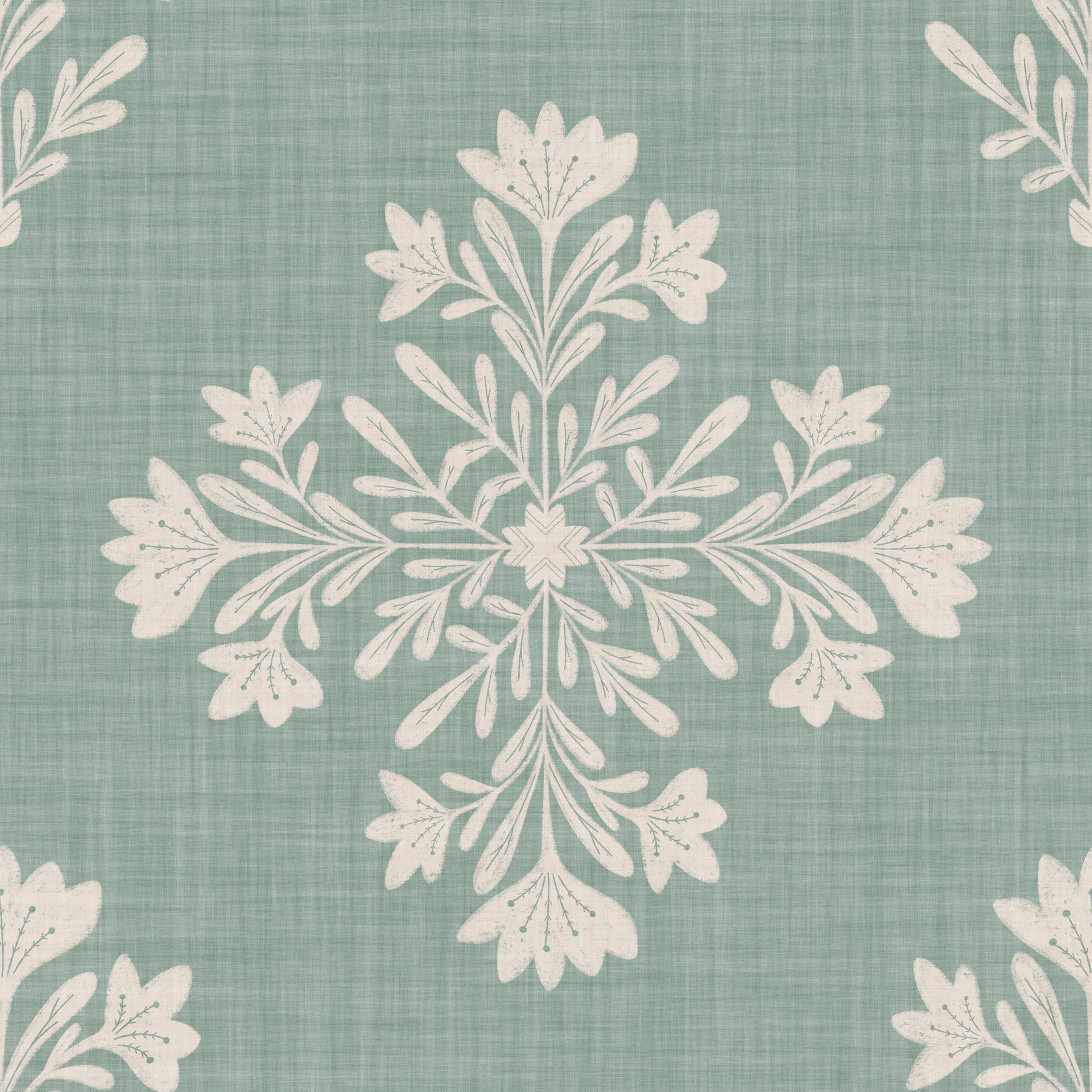 This wallpaper boasts a sophisticated yet simple design, featuring a repeating pattern of creamy white botanical illustrations on a soft sage green background. The linen-like texture adds depth and a touch of rustic charm. The muted color palette creates a sense of calm and tranquility, making it perfect for various rooms in your home. The subtle design is effortlessly versatile, complementing a range of interior design styles, from contemporary minimalist to cozy farmhouse aesthetics. Enjoy a peaceful and harmonious atmosphere with this elegant wallpaper.