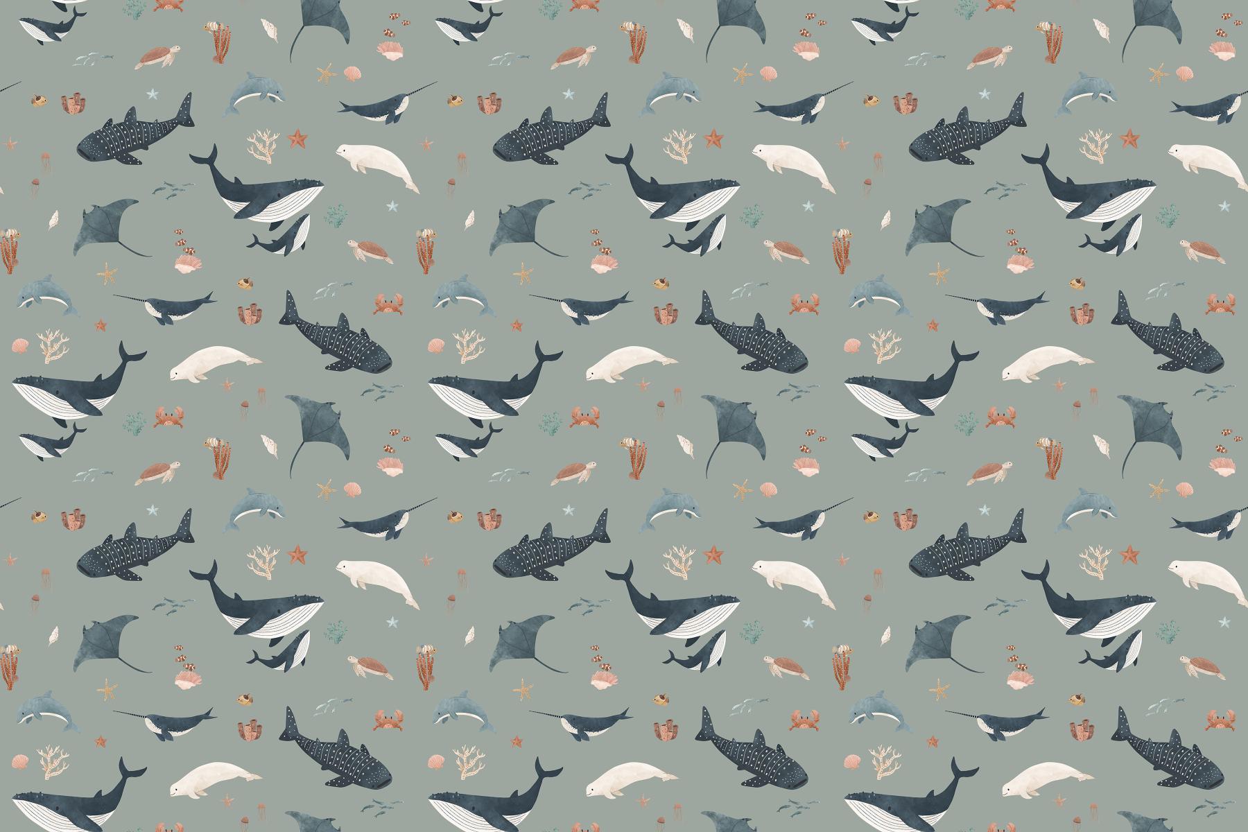 Whale and shark wallpaper for kids' room