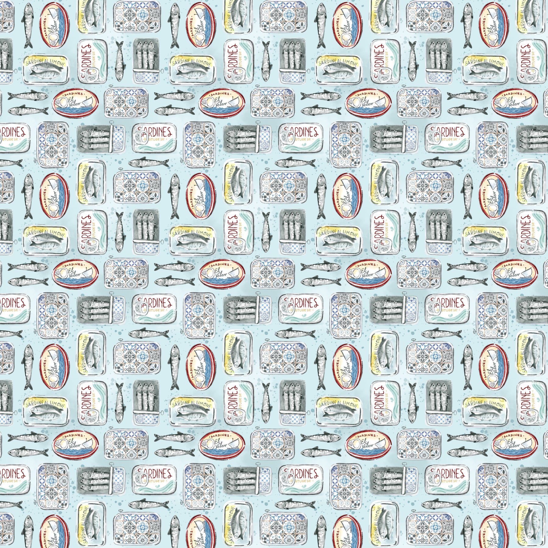 Dive into the charming vibes of coastal life with our Sardines Portugese wallpaper. This design, brimming with oceanic flair, features whimsically illustrated sardines, both free-swimming and nestled in vintage-style cans. Perfect for bringing a touch of the seaside into your home, this pattern is ideal for those looking to add a splash of nautical charm to their interiors. Its playful yet classic look is a great choice for enhancing kitchens, dining areas, or any space deserving of a maritime twist.