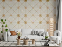 Embrace the timeless elegance of 'Sashiko Hana-Goshi - Latticed Flower Stitch Gold'. Inspired by the traditional Japanese embroidery technique, this design features delicate flower motifs rendered in a rich, golden hue. The intricate latticework creates a sense of understated luxury, adding depth and visual interest to any interior. Evoking a sense of calm and sophistication, it brings a touch of artistry to your living space. Transform walls into a statement of refined taste, capturing the essence of Japanese craftsmanship.