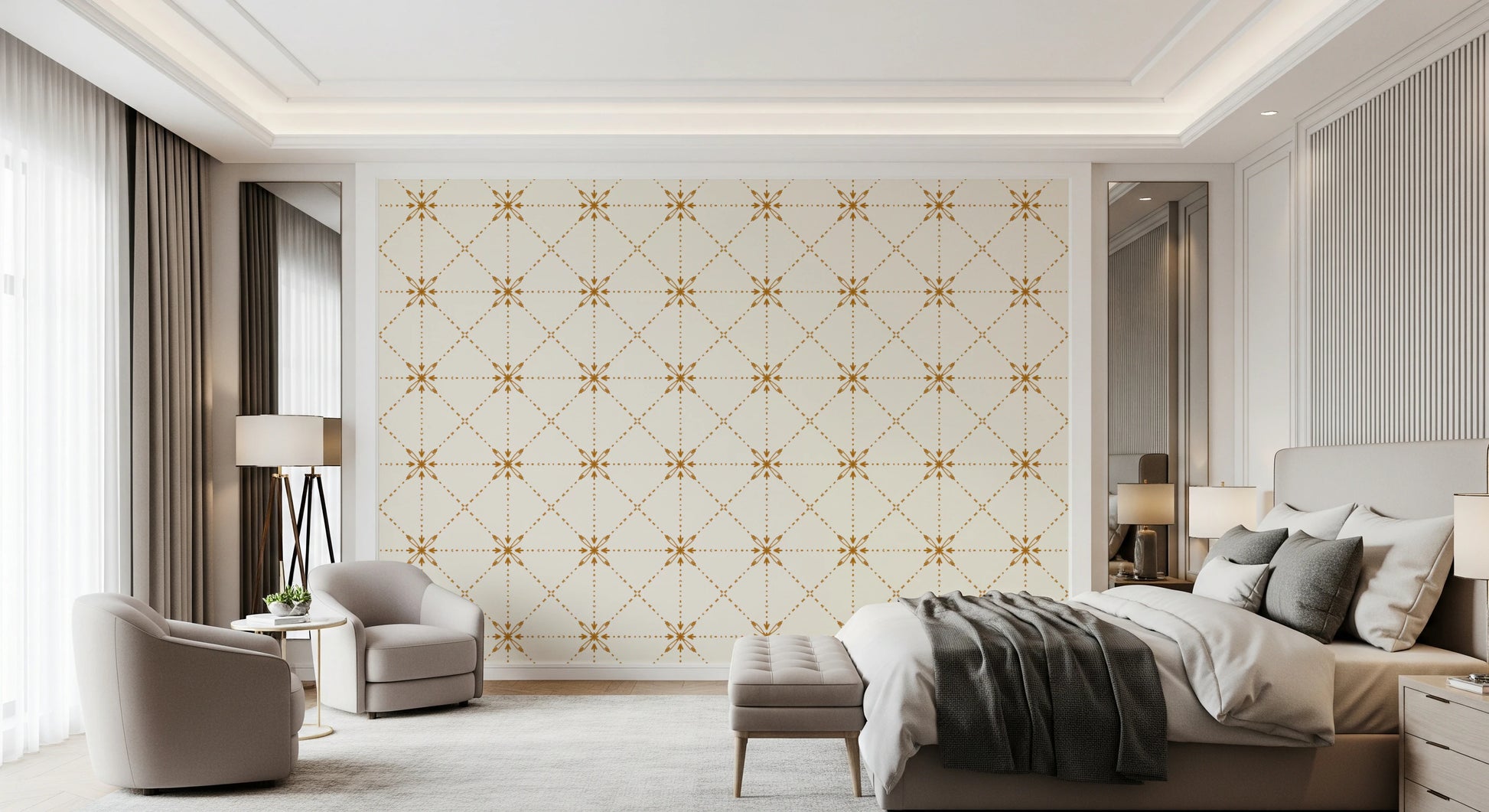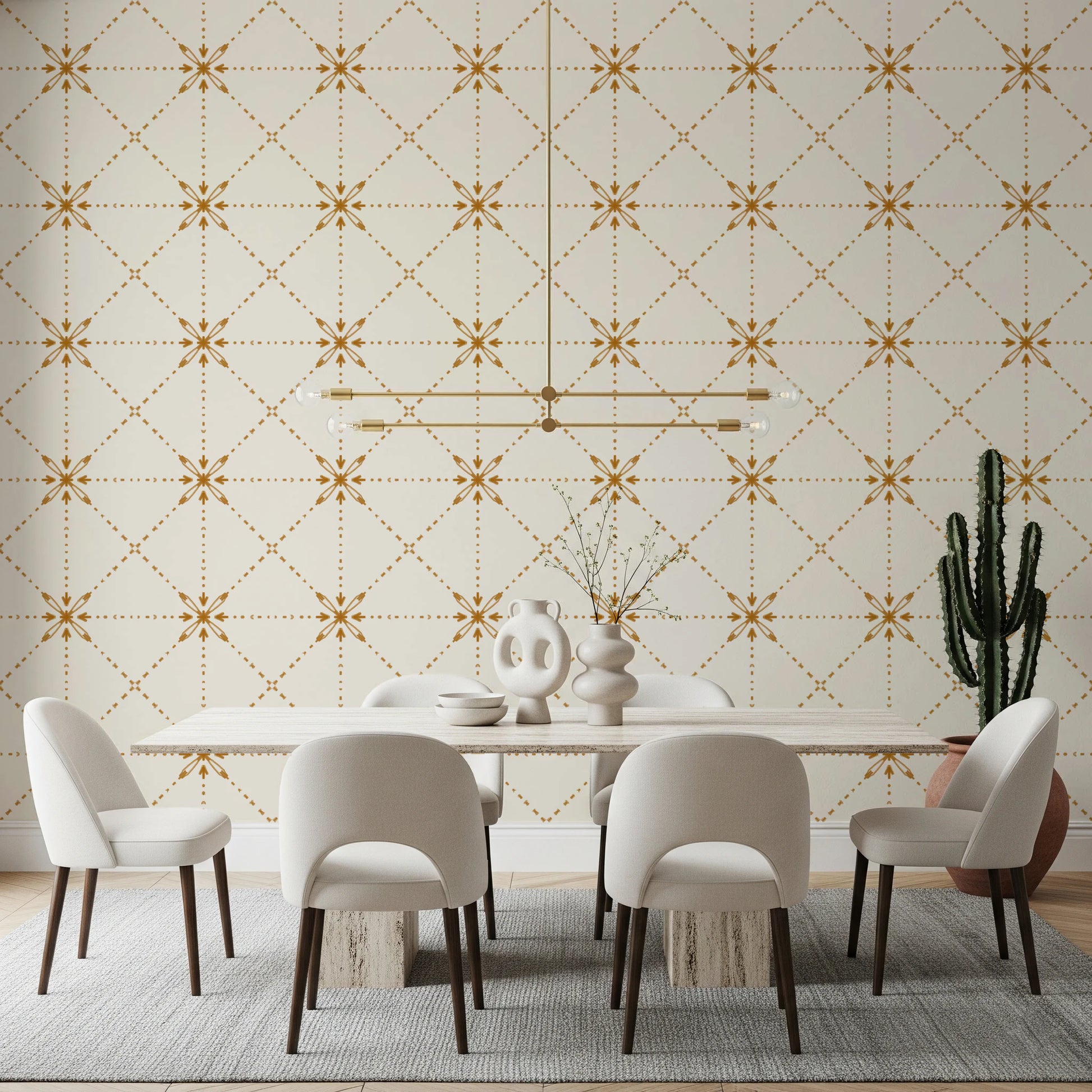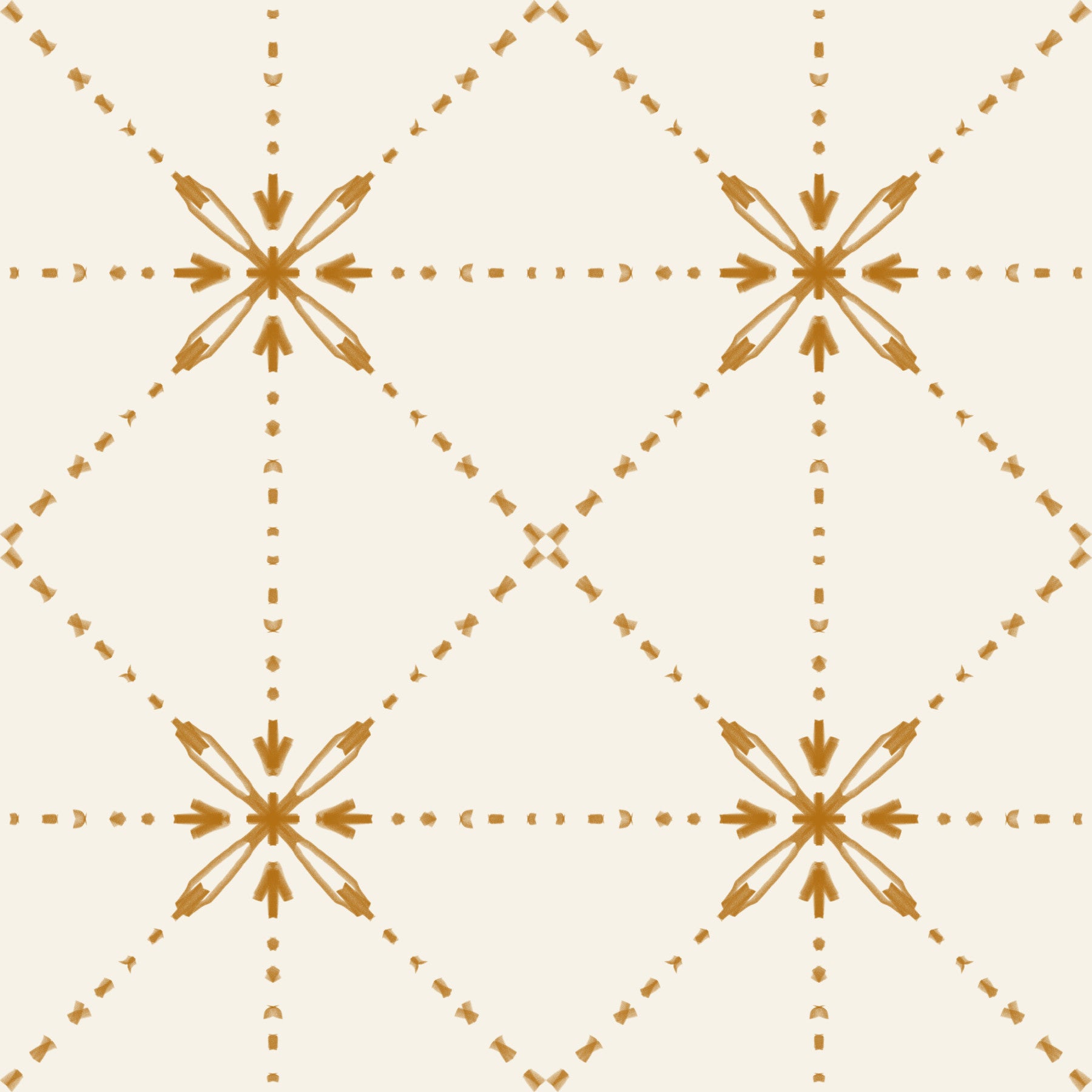 Sashiko Hana-Goshi - Latticed Flower Stitch Gold Wallpaper⁠