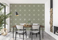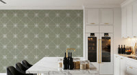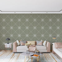 Introduce a touch of serene elegance to your living space with 'Sashiko Hana-Goshi'. Inspired by the traditional Japanese embroidery technique, this pattern features delicate, stylized flower motifs intricately woven into a subtle latticed grid. The soft sage background provides a calming backdrop, allowing the off-white, stitched-like details to gently come to life. The design evokes a sense of handcrafted beauty and mindful simplicity, perfect for creating a tranquil and inviting atmosphere in any room. Add a unique touch of artistry and transform your walls into a haven of understated charm with this piece, where cultural heritage meets contemporary style.