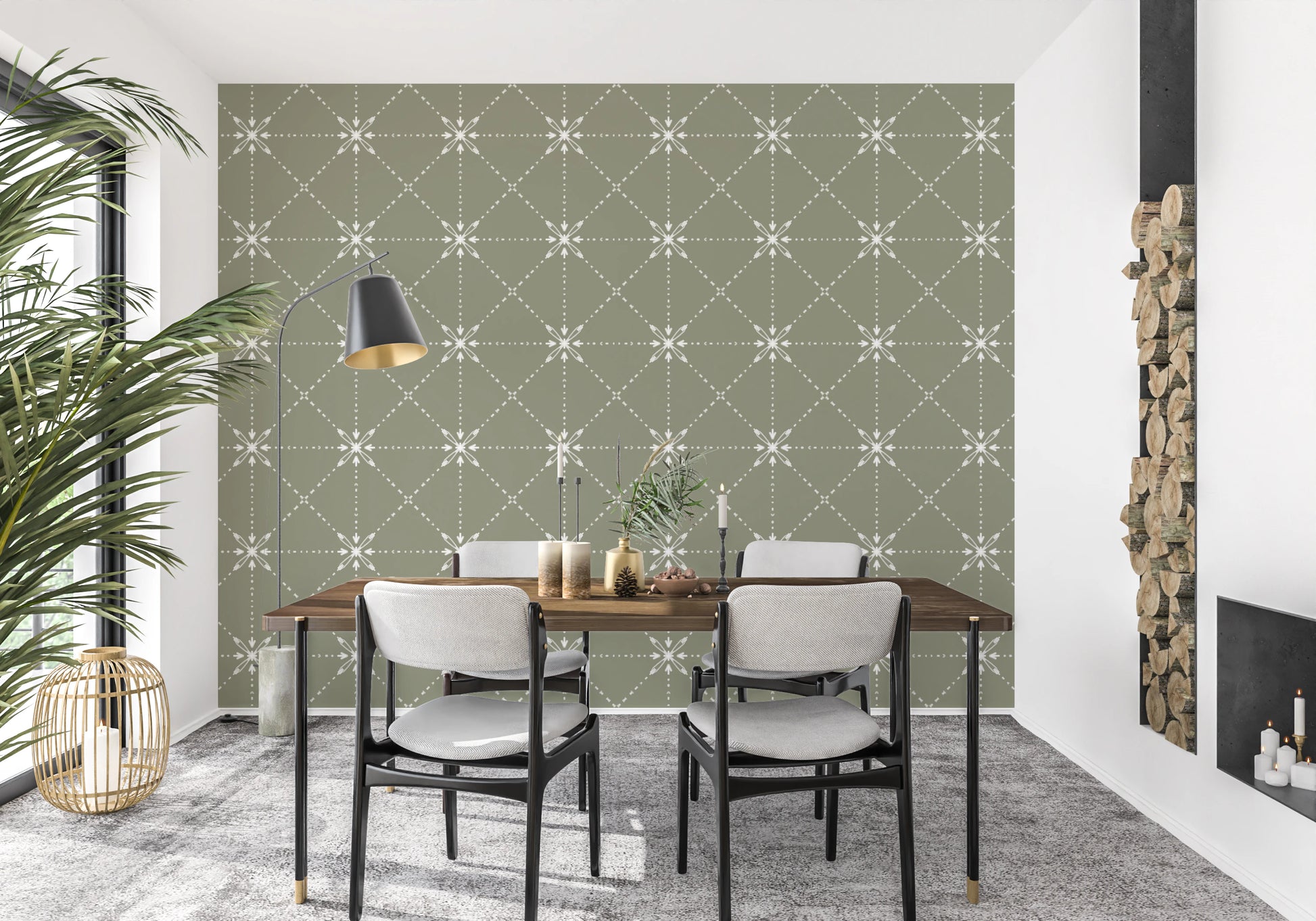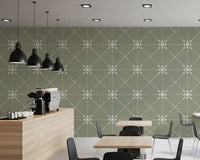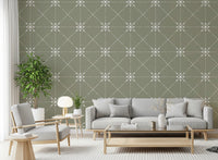 Sashiko Hana-Goshi - Latticed Flower Stitch On Sage Wallpaper⁠