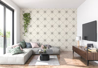 Embrace the quiet elegance of traditional Japanese artistry with 'Sashiko Hana-Goshi.' This design reimagines the intricate beauty of Hana-Goshi (flower lattice) stitch work, translating its delicate patterns into a stunning visual experience for your walls. The subtle interplay of geometric shapes creates a soothing rhythm, with each stylized flower rendered in a sophisticated silhouette. Dashed lines form the lattice framework, lending a tactile feel evocative of hand-stitched fabric. The gentle color palette adds a touch of understated refinement, perfect for creating a serene and sophisticated ambiance within any room. Invite a touch of timeless craftsmanship into your space with this elegant design.