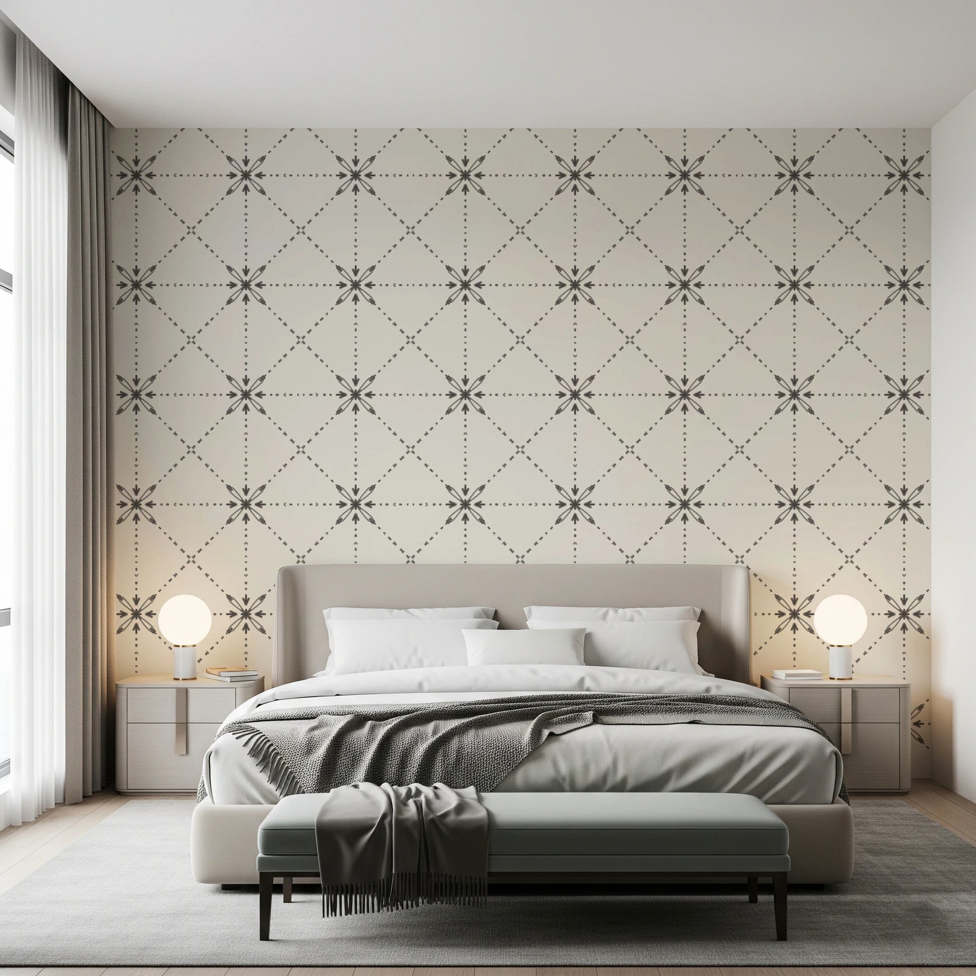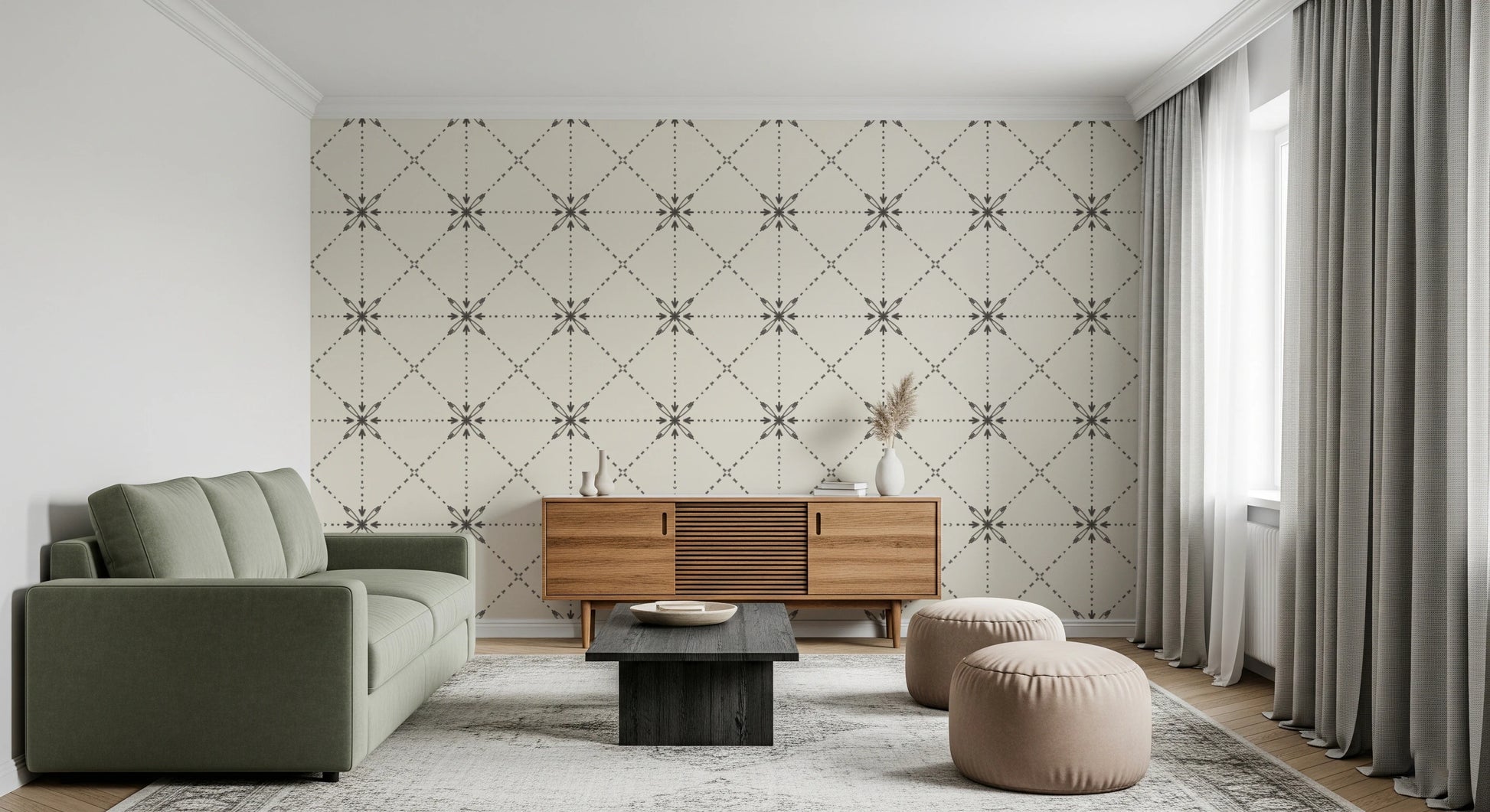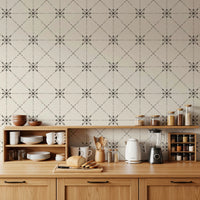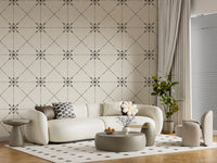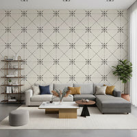 Sashiko Hana-Goshi - Latticed Flower Stitch Silhouette Wallpaper⁠