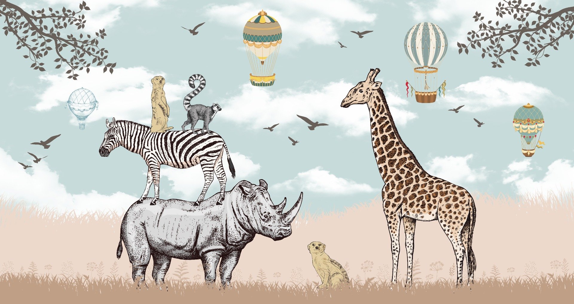 Savannah Animals Kids Room Wallpaper Mural - Giffywalls