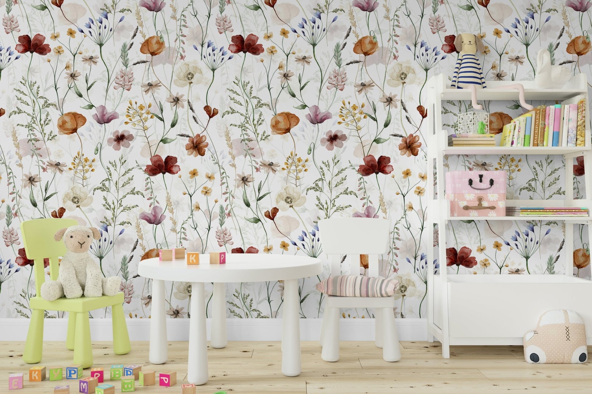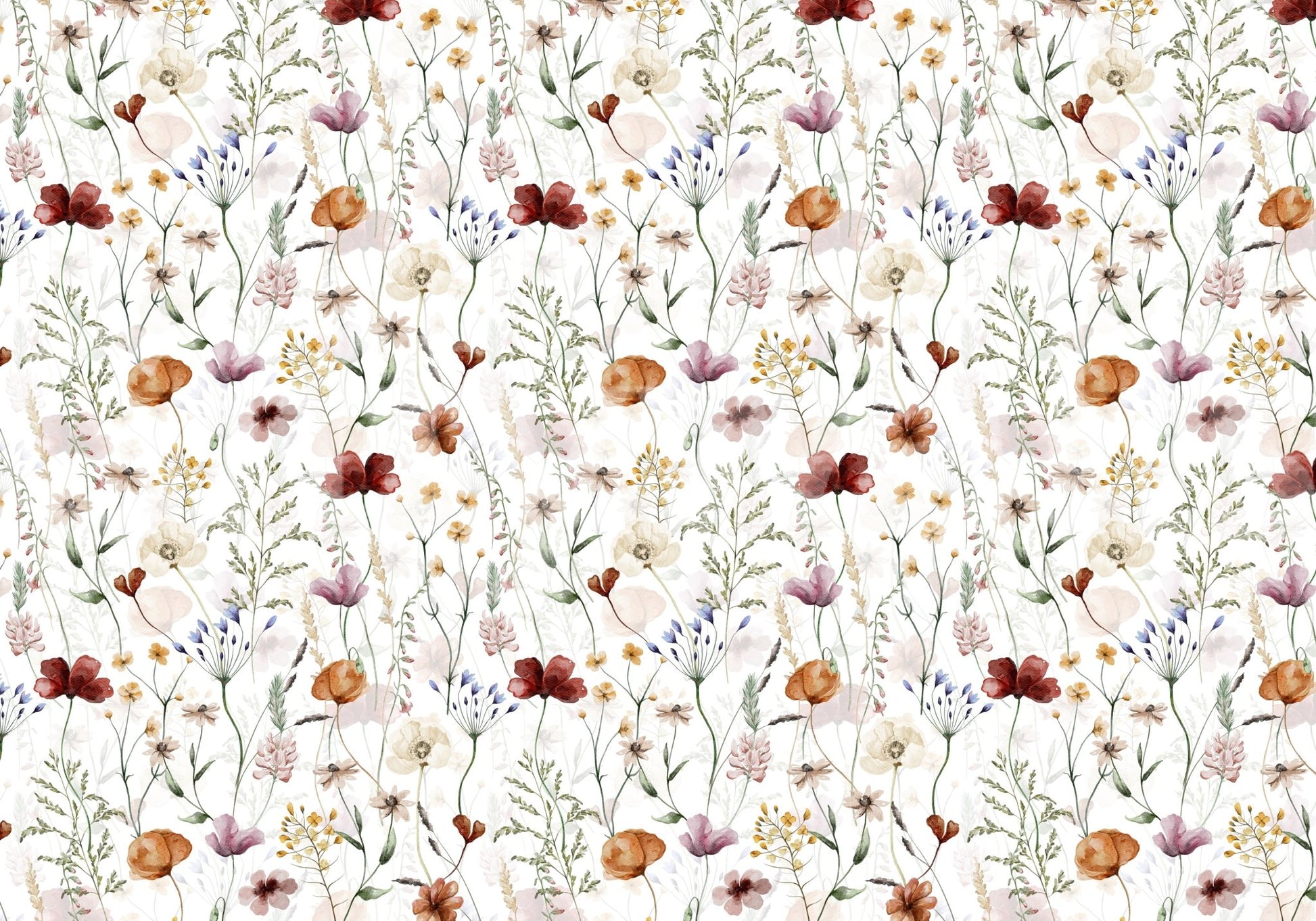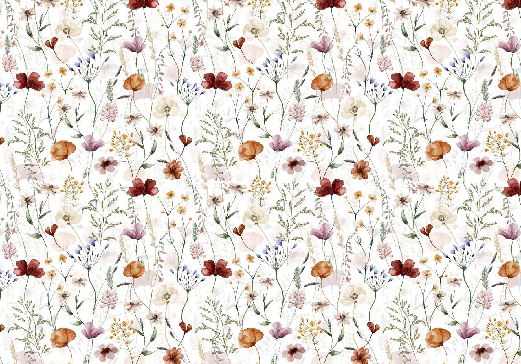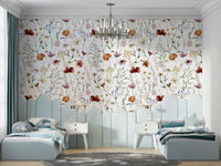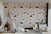 Scandinavian Wildflowers Watercolor Meadow for Kidsroom Wall Mural