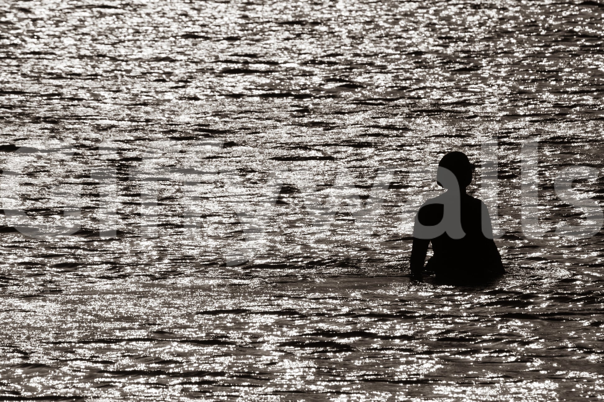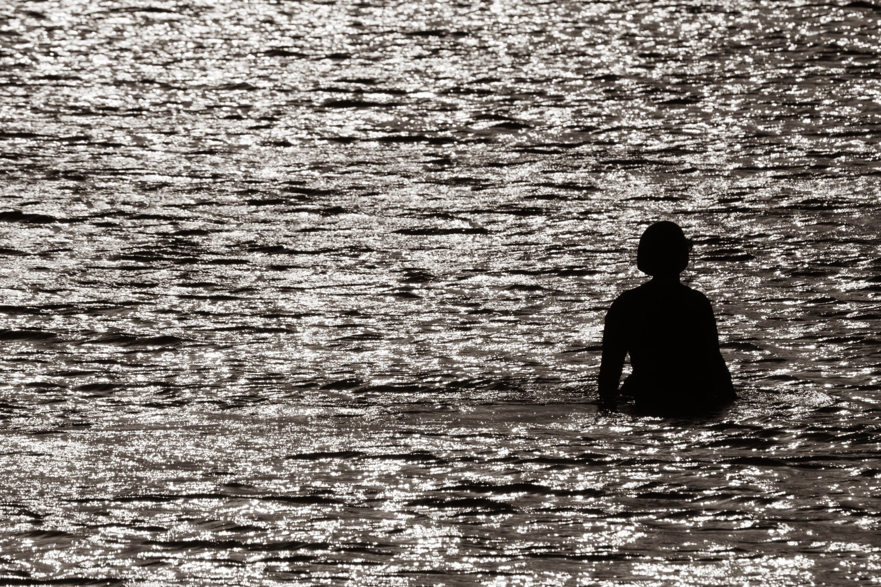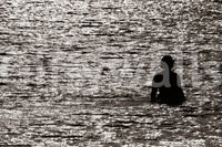 Captured in a striking monochrome, "Scenes from Eilat #10" presents a moment of serene solitude amidst the shimmering waters. The image features a silhouette of a figure standing in the gentle waves, back turned to the viewer, inviting contemplation and a sense of quietude. The light dances across the water's surface, creating a mesmerizing display of reflections that add depth and texture to the scene. This wallpaper encapsulates the peaceful ambiance of Eilat's shores, offering a calming visual escape. Perfect for creating a minimalist and contemplative atmosphere on your screen, "Scenes from Eilat #10" evokes the feeling of being lost in thought, embraced by the tranquil beauty of the sea. This image is a reminder to slow down, breathe, and appreciate the simple elegance of nature's embrace.