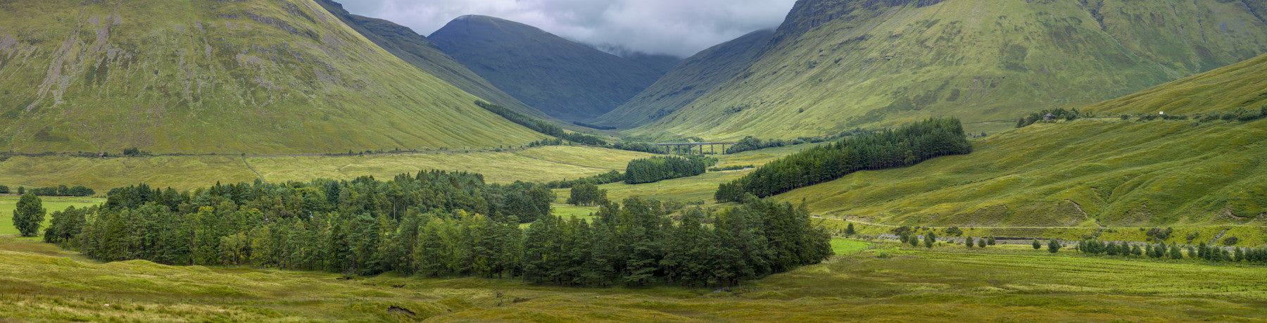 Wide panoramic valley view of the Scottish Highlands Vista Wall Mural.