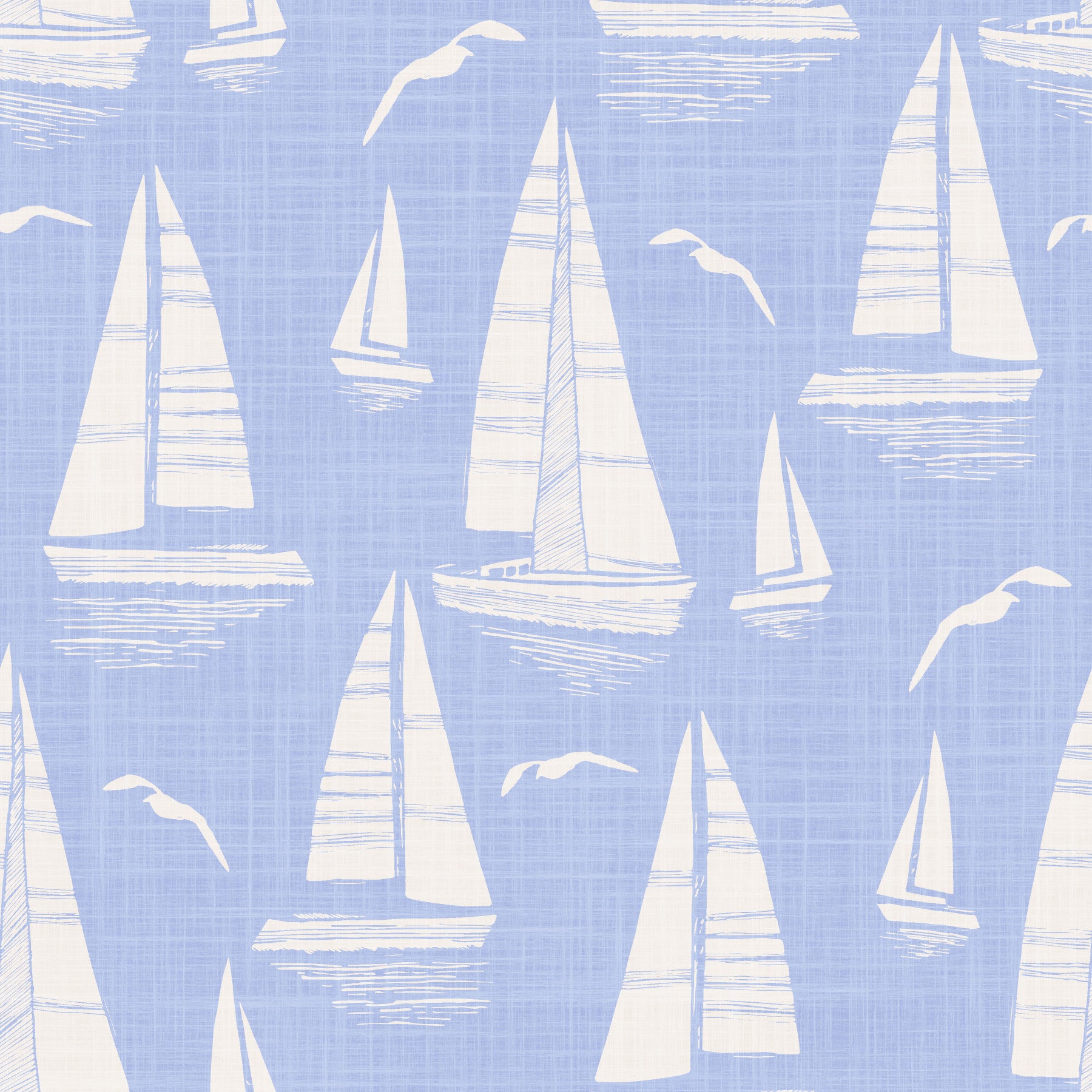 Experience the serene beauty of a seaside regatta with this captivating wallpaper. Set against a calming sky-blue linen-textured background, elegant off-white sailboats glide across the water, their simple yet striking silhouettes evoking a sense of peaceful movement. Seagulls in flight add a touch of lively dynamism, completing the idyllic coastal scene. The subtle texture and soft color palette create a tranquil atmosphere, perfect for adding a touch of nautical charm to any room. This wallpaper is a calming blend of minimalist design and maritime inspiration, ideal for those seeking a sophisticated and relaxing ambiance.