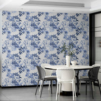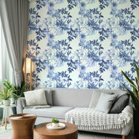 Immerse yourself in the tranquility of 'Serene Blue Botanicals'. This wallpaper showcases a breathtaking watercolor floral design in calming shades of blue. Delicate blossoms and lush leaves intertwine, creating a seamless pattern that evokes a sense of peaceful serenity. The intricate details of each flower and leaf are meticulously rendered, adding depth and sophistication to the design. Perfect for bedrooms, living rooms, or any space where you desire a touch of understated elegance and calm, this wallpaper transforms your walls into a tranquil sanctuary.