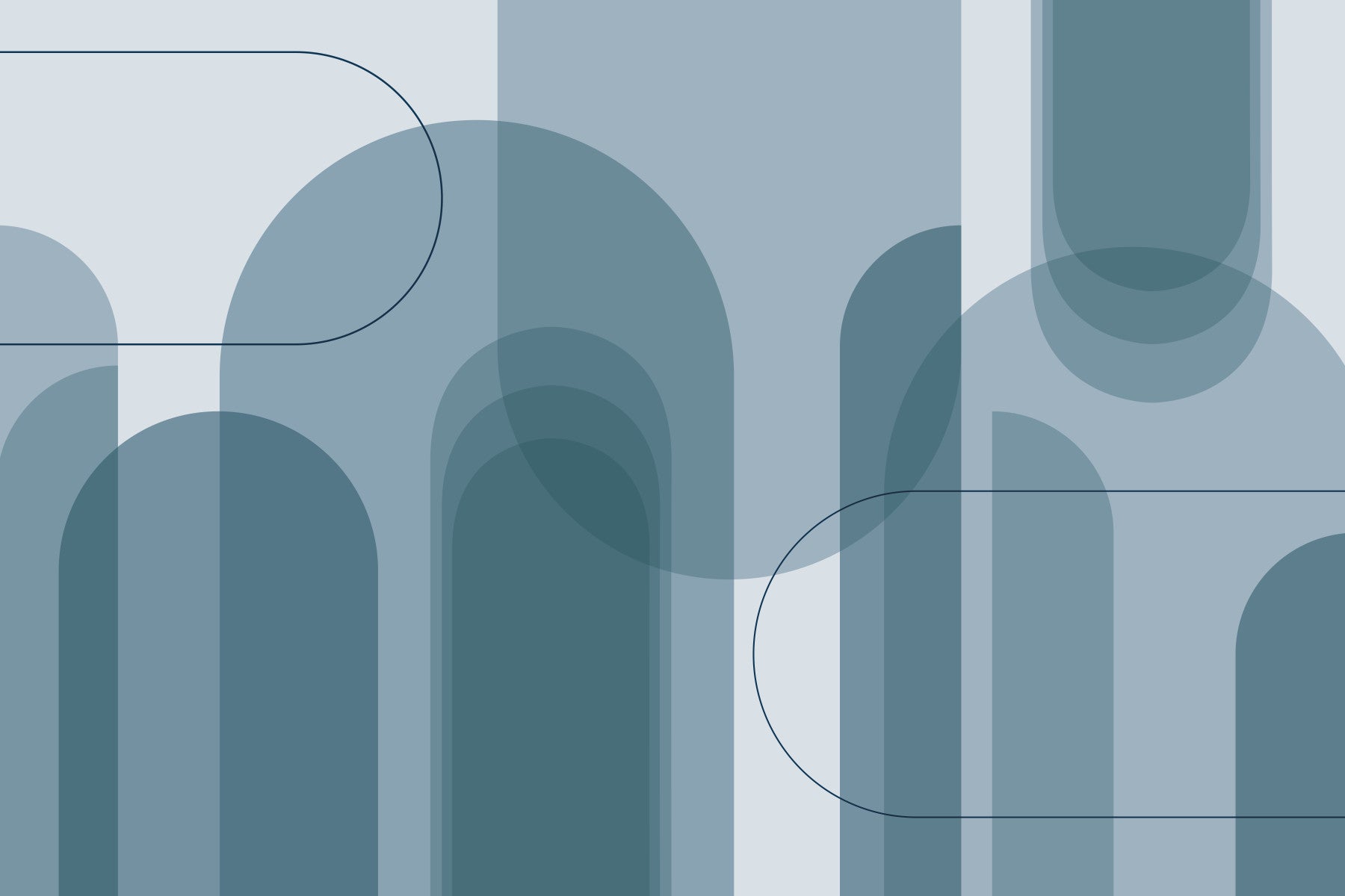 Layered blue mural wallpaper with curves