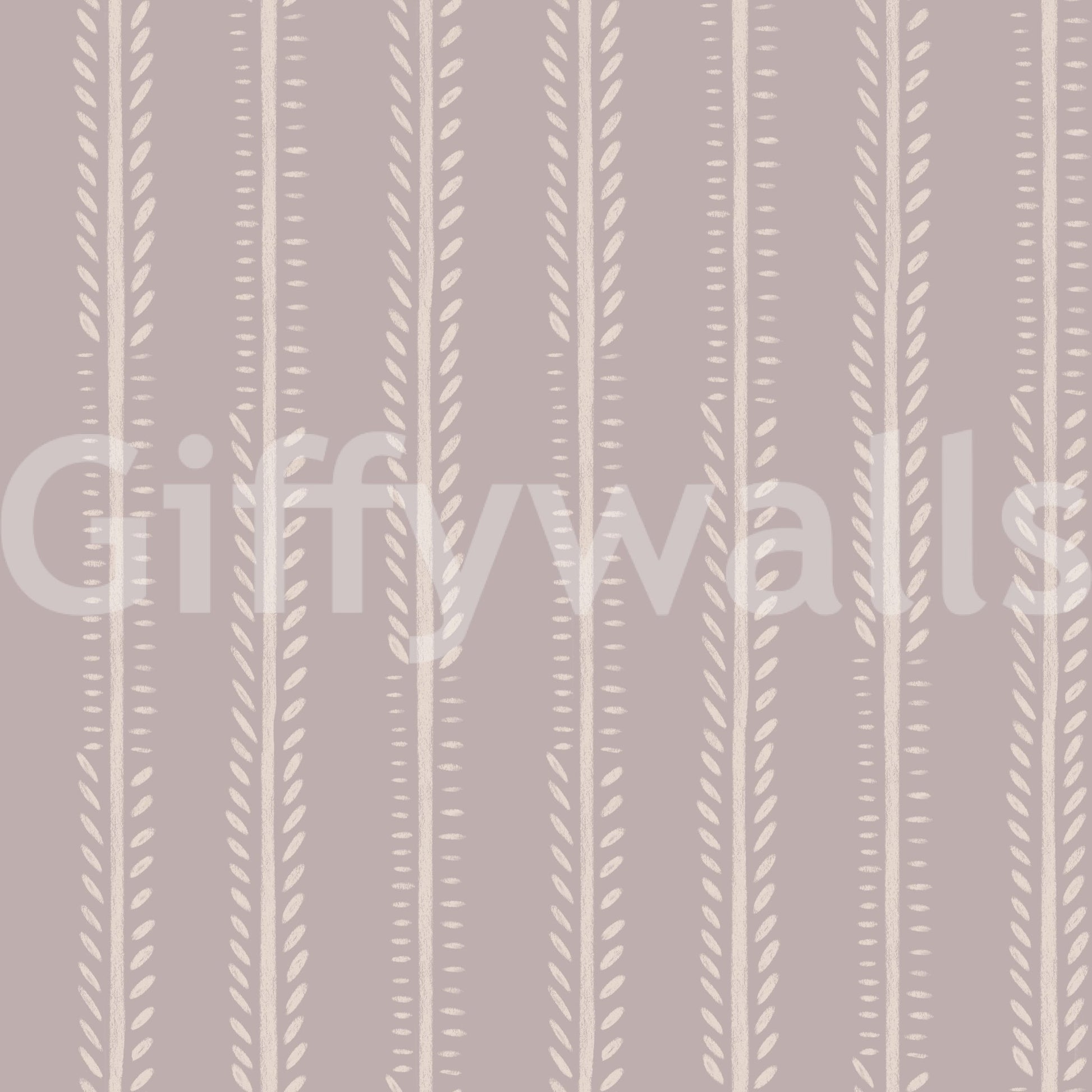 This wallpaper design features a calming and minimalist pattern of vertical stripes adorned with delicate, hand-drawn leaf motifs. The soft beige and dusty rose color palette creates a serene and tranquil atmosphere, perfect for bedrooms, living rooms, or any space seeking a touch of understated elegance. The subtle texture of the leaf shapes adds a tactile quality to the overall design, making it visually engaging without being overwhelming. Its simple yet sophisticated aesthetic makes it a versatile choice for various interior styles, effortlessly blending into modern, minimalist, or even rustic settings. The seamless pattern ensures a cohesive and visually appealing look across any wall space.