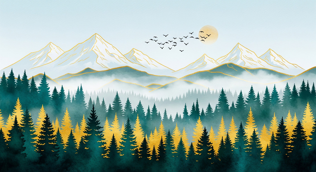 Serene Forest Landscape Art Print | Tranquil Nature Photography | Green Trees and Soft Light Wall Mural