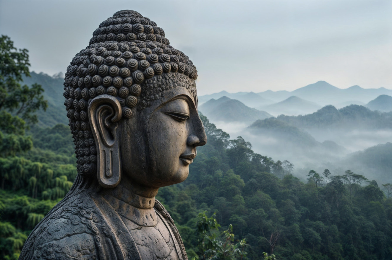 Soft light filters through the tree canopy, creating a peaceful glow.