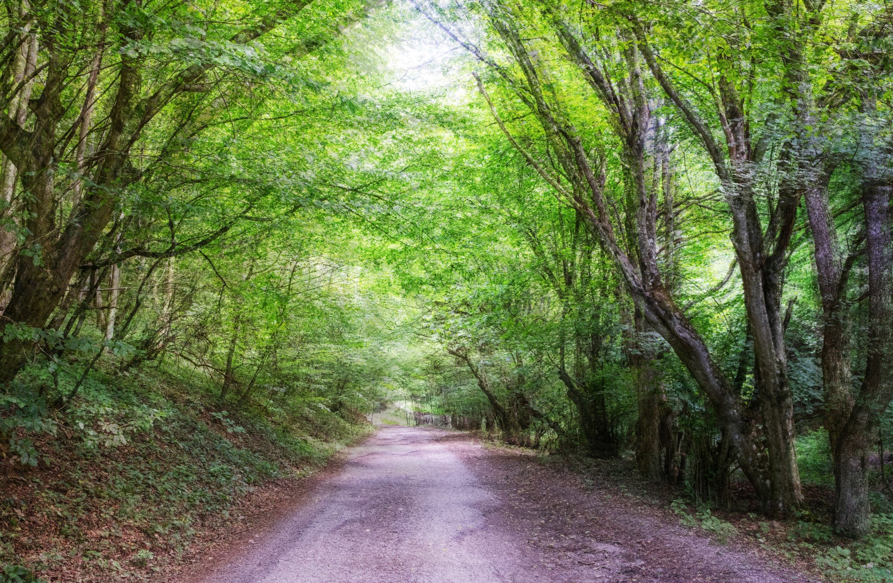 Serene Forest Pathway Art Print | Tranquil Nature Photography | Greenery and Sunlight Wall Mural
