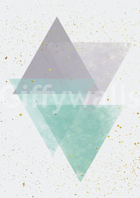 This wallpaper features a minimalist design with overlapping watercolor triangles in soft blush pink and serene blue-gray hues. The subtle texture of the watercolor blends beautifully with scattered gold speckles, adding a touch of elegance and sophistication. The overall effect is calming and peaceful, creating a sense of tranquility and balance. Ideal for bedrooms, living rooms, or home offices, this design offers a refined aesthetic that's both modern and timeless. The muted color palette and geometric shapes create a soothing atmosphere, perfect for promoting relaxation and focus.