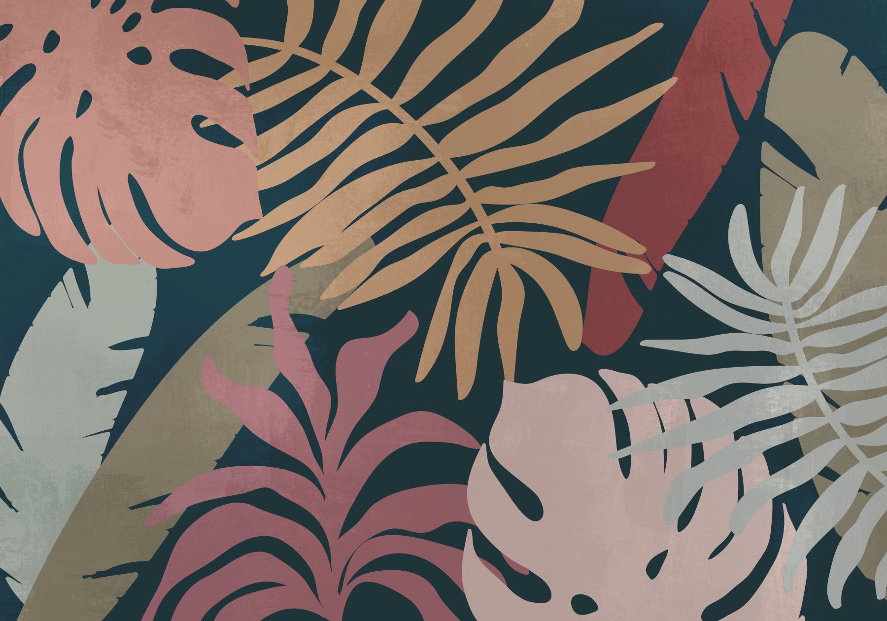 A beautiful wide-angle wall mural of plant leaves.