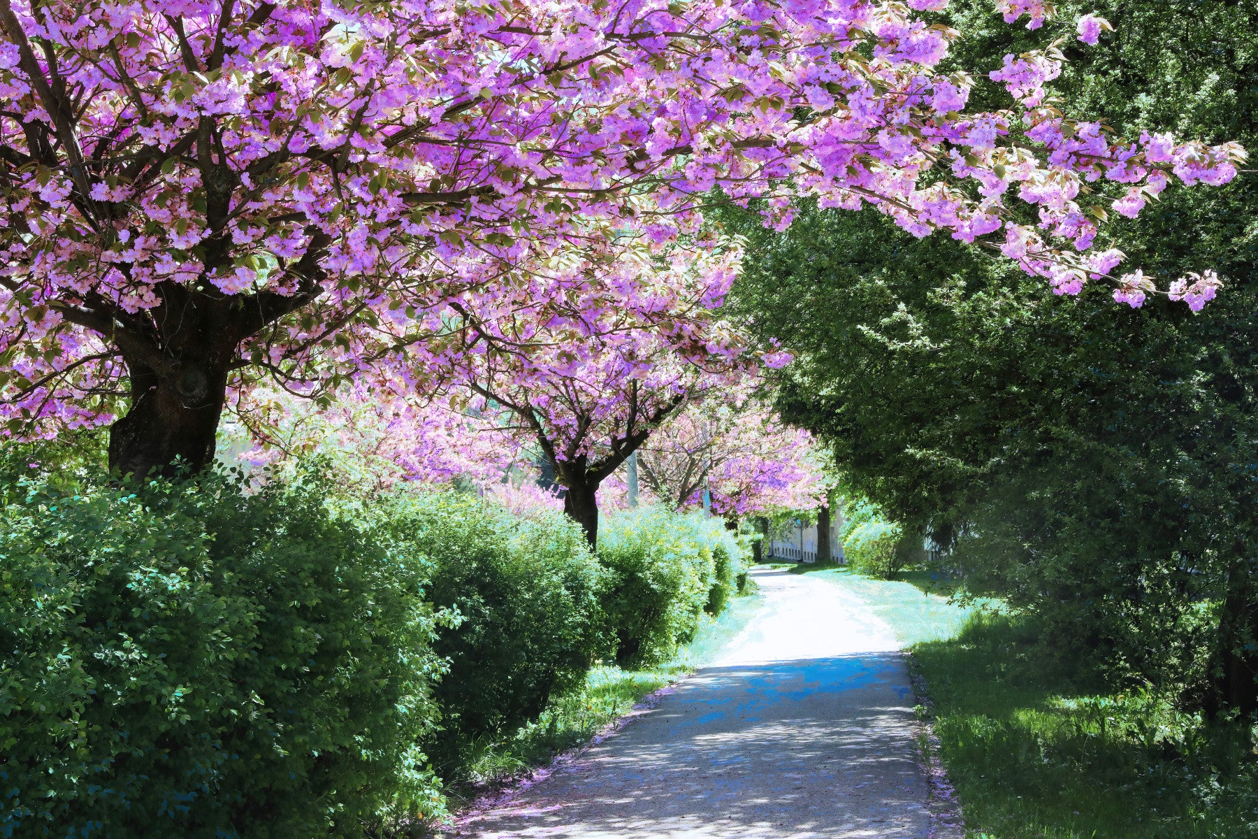 Serene Pathway Through Blossoming Trees - Nature Photography Print Wall Mural