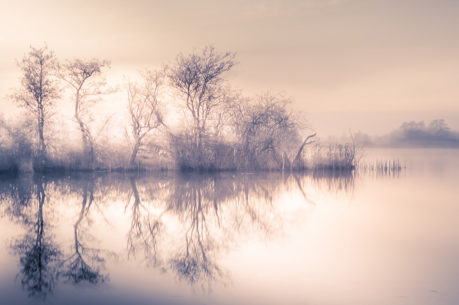 Ethereal pink fog image wallpaper, lovely Serene Reflections nature scene.