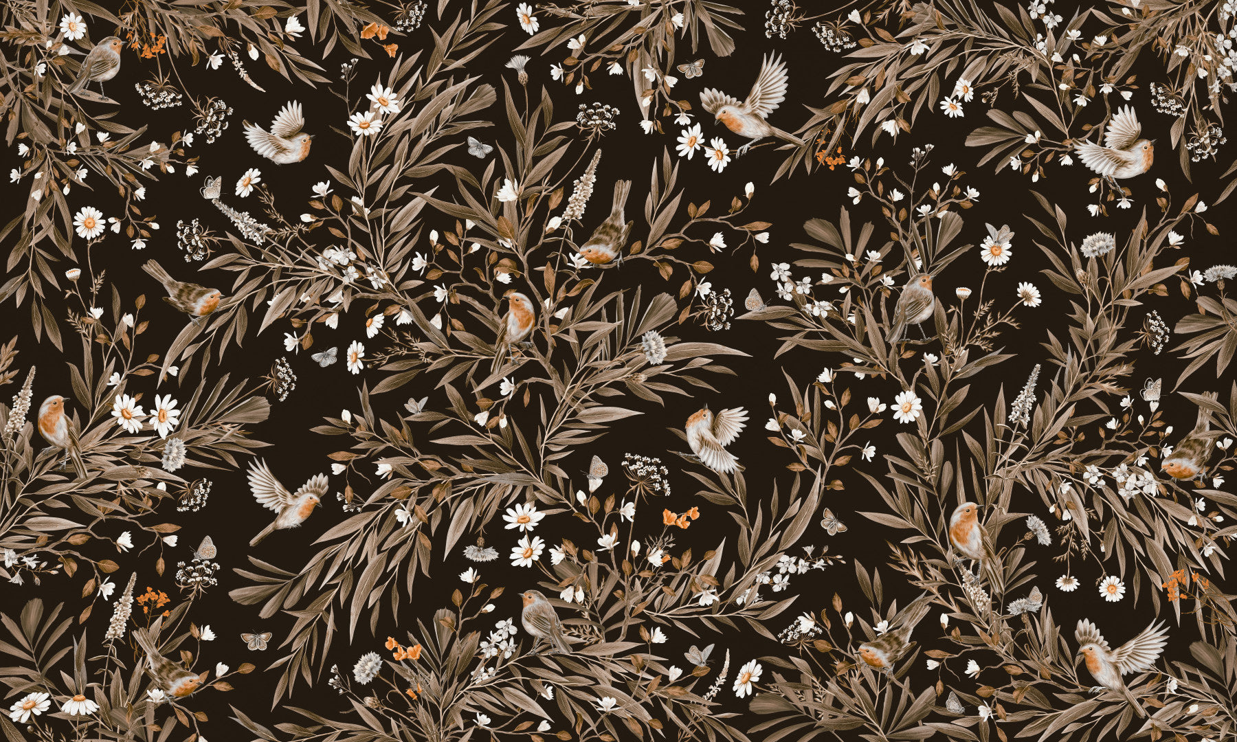 Dainty songbirds and branches on the Serene Songbirds Wall Mural.