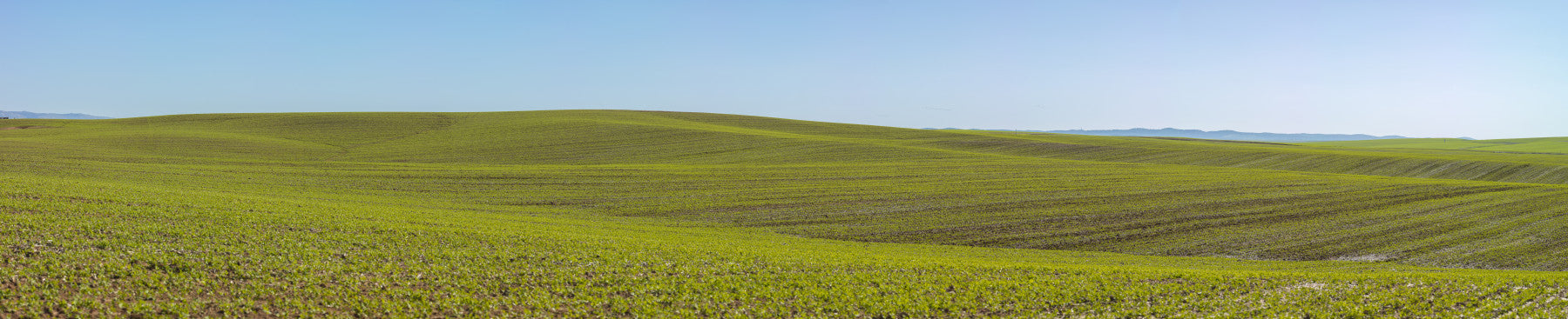 This wallpaper captures the essence of a tranquil spring landscape. Rolling green hills gently undulate under a clear, expansive sky, creating a sense of calm and serenity. The vibrant green of the young crops contrasts beautifully with the soft blue of the sky, evoking a feeling of peace and renewal. The image's simplicity and natural beauty make it perfect for creating a relaxing and calming atmosphere in any room. The subtle textures of the freshly sown field add a touch of realism, while the overall composition is pleasingly balanced and harmonious. This wallpaper is ideal for those seeking a minimalist yet impactful design for their home.