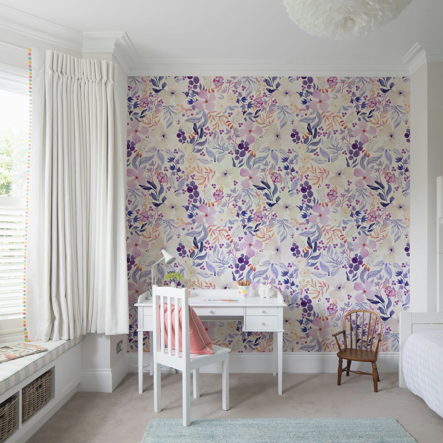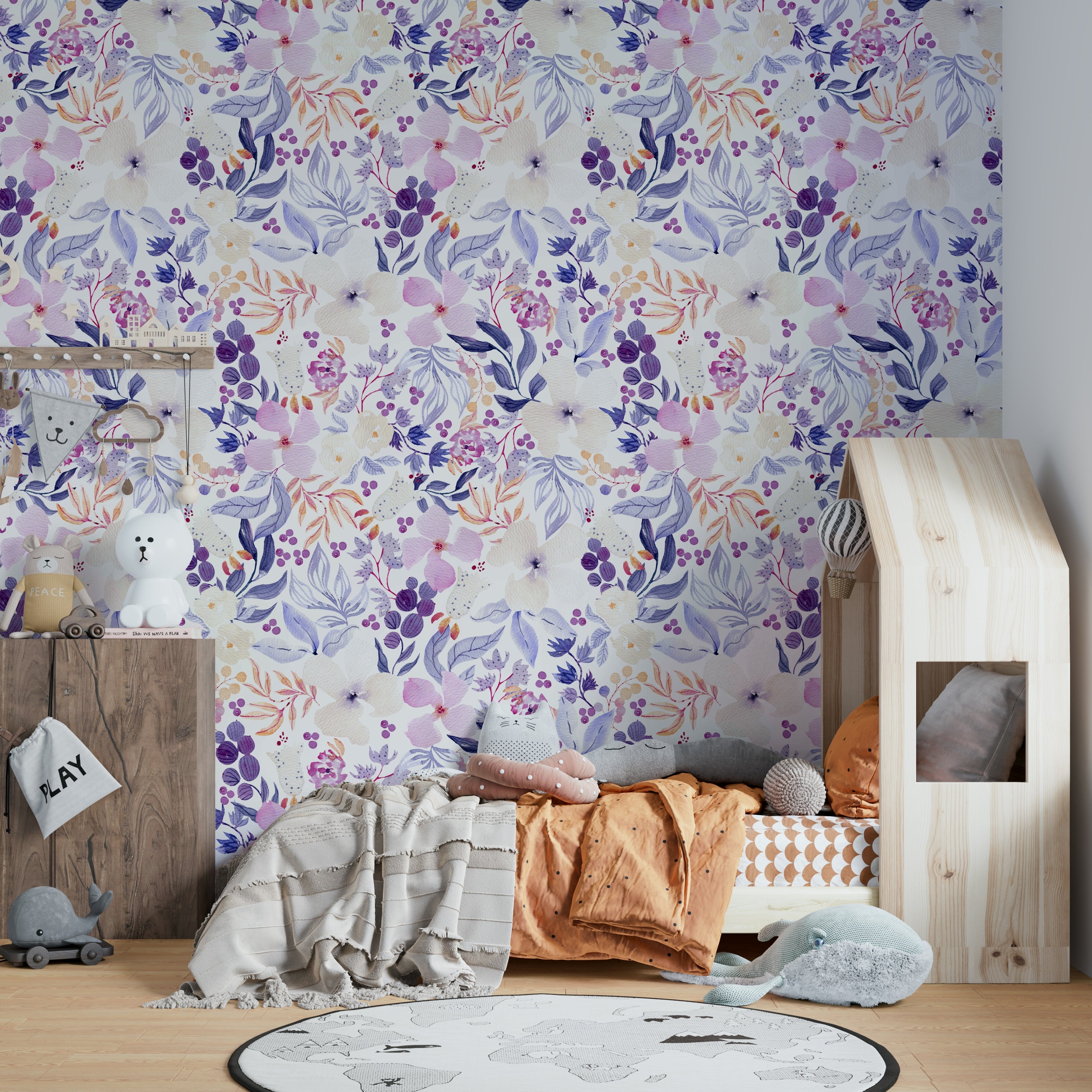 Light and airy floral mural in watercolor style