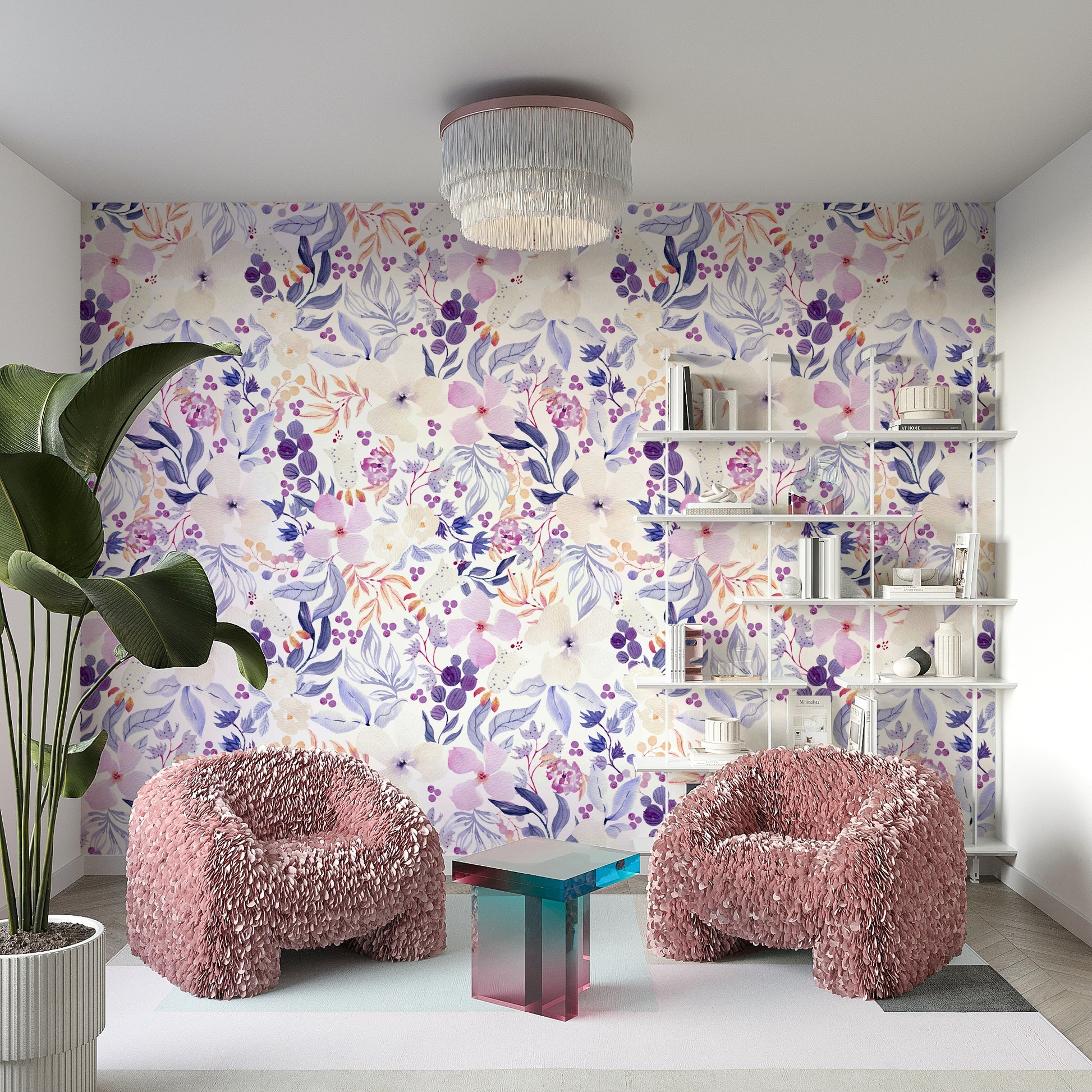 Serene bloom mural with hand-painted watercolor effect