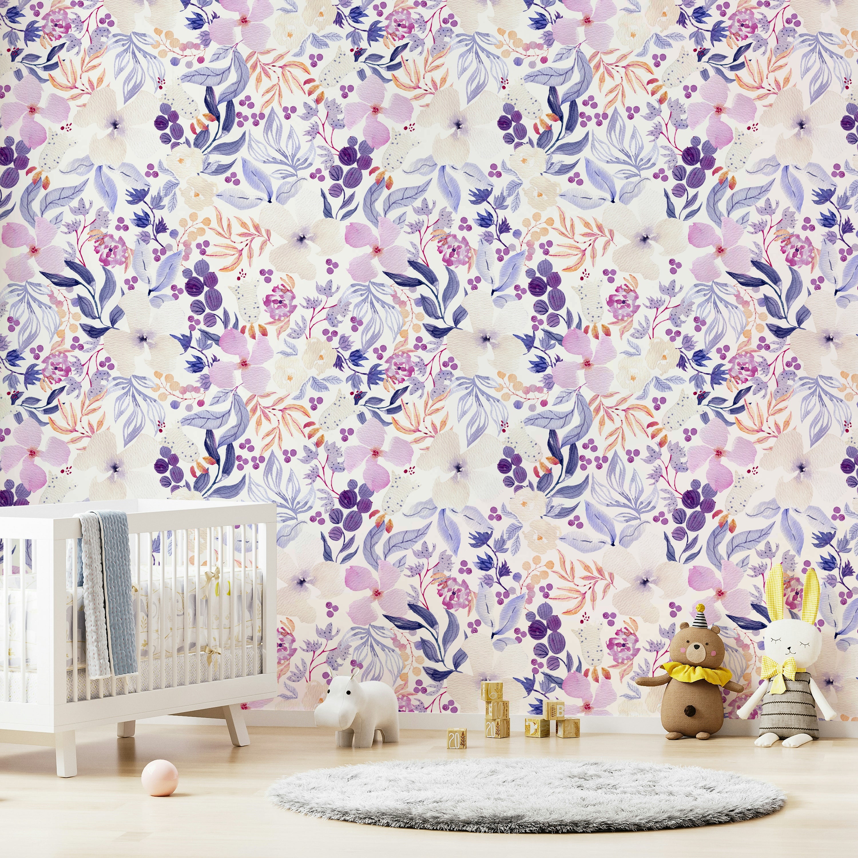 Serene watercolor bloom wall mural with soft florals