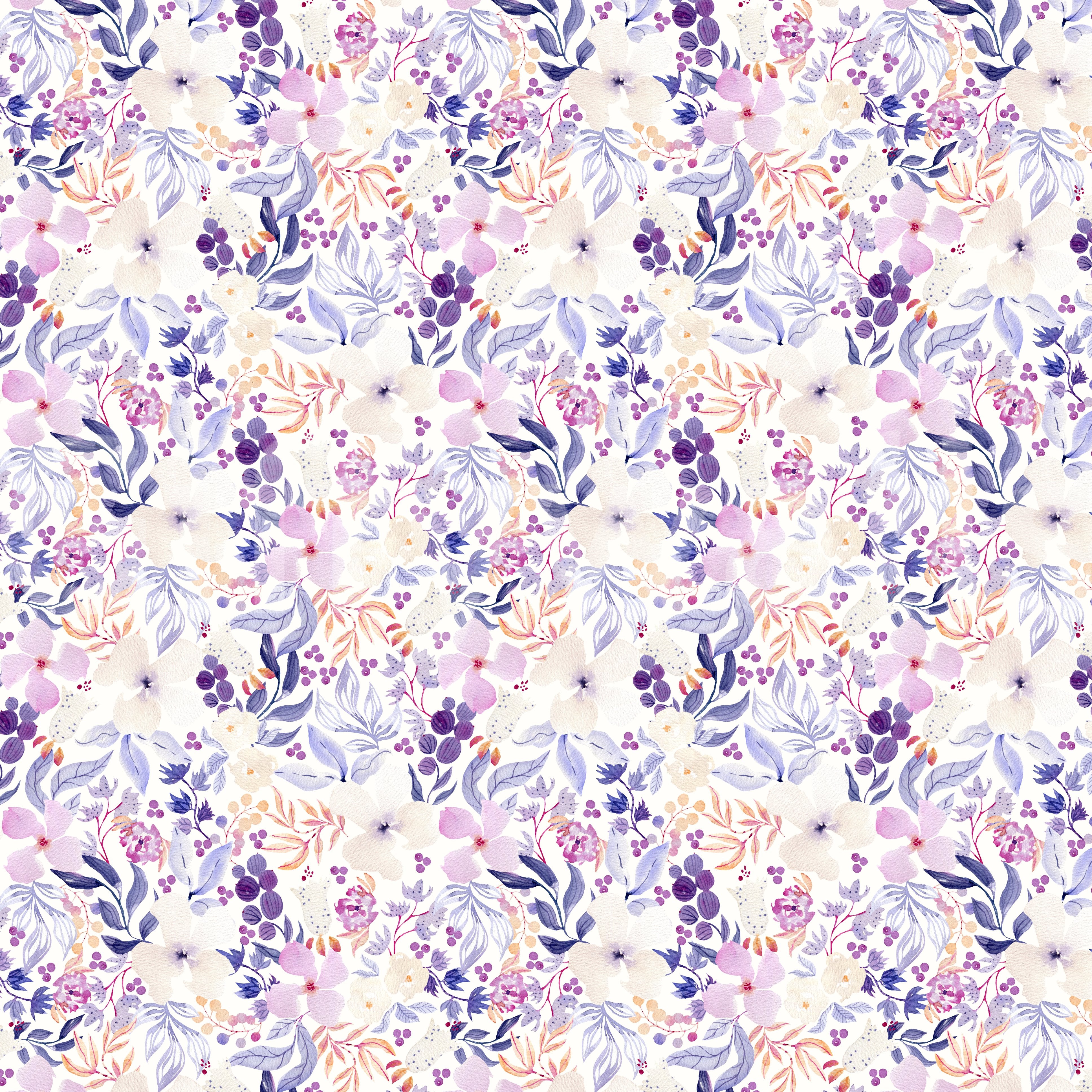 This wallpaper presents a captivating watercolor floral design, featuring a harmonious blend of soft pastel hues. Delicate pink, lavender, and cream flowers intertwine with elegant blue-toned foliage, creating a sense of tranquility and serenity. The soft color palette evokes a calming mood, perfect for bedrooms, living rooms, or any space where a peaceful atmosphere is desired. The intricate details of each blossom and leaf add a touch of sophistication to this dreamy, romantic design, making it an ideal choice for those seeking a touch of elegance in their home decor. The seamless pattern ensures a cohesive and aesthetically pleasing look across any surface.