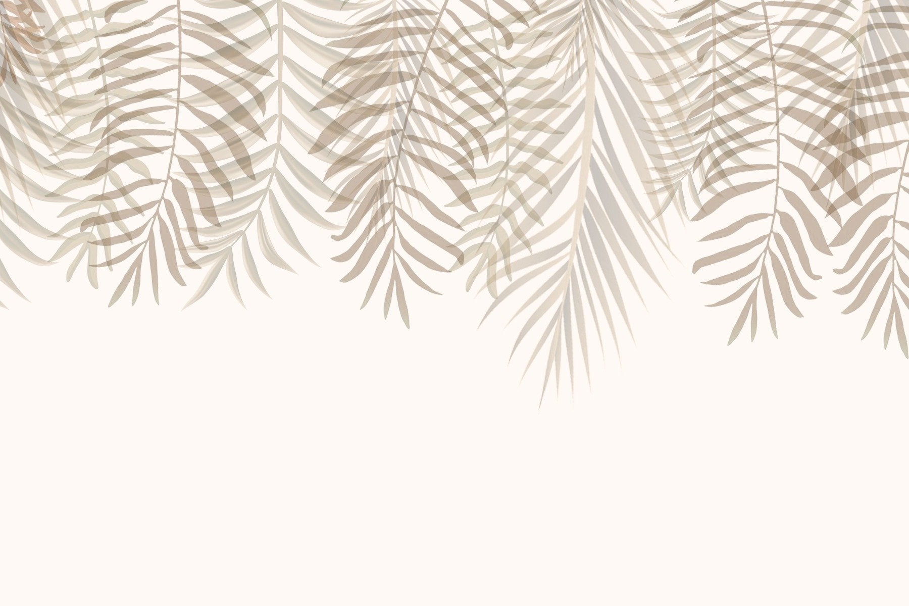 The serenity palm fronds wallpaper mural is an ode to the understated beauty of nature. This leaves wallpaper features a cascade of palm fronds, rendered in soft, neutral tones that evoke a sense of calm and simplicity. Ideal for those seeking a touch of the tropics without overwhelming their interiors, this design blends effortlessly with any decor style. The subtle play of light and shadow across each leaf brings a three-dimensional quality to this tropical wallpaper, creating an organic, soothing presence in a bedroom, living area, or workspace. This mural invites a breath of fresh air into your home, celebrating the elegant structures and gentle movements reminiscent of a serene, sun-drenched grove. It's a timeless piece that complements the peaceful moments of everyday life.