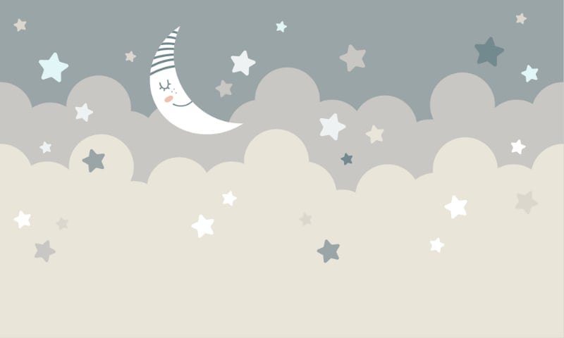 Let the beauty of the night sky into your child's room with this magical night-landscape wallpaper mural. Imagine the joy in their hearts as they drift into sleep under a peaceful crescent moon illuminated by a scattering of sparkling stars, all gently twinkling in the background of soft, fluffy clouds. This kid's wallpaper is not only a backdrop; it's a smooth, dreamy corridor to bedtime. Every star blinks in a friendly light, creating a cozy environment for bedtime stories and a peaceful night's sleep. An ideal dream for the child gazing at the night sky, this night wallpaper transforms a simple space into a cozy, dark space.