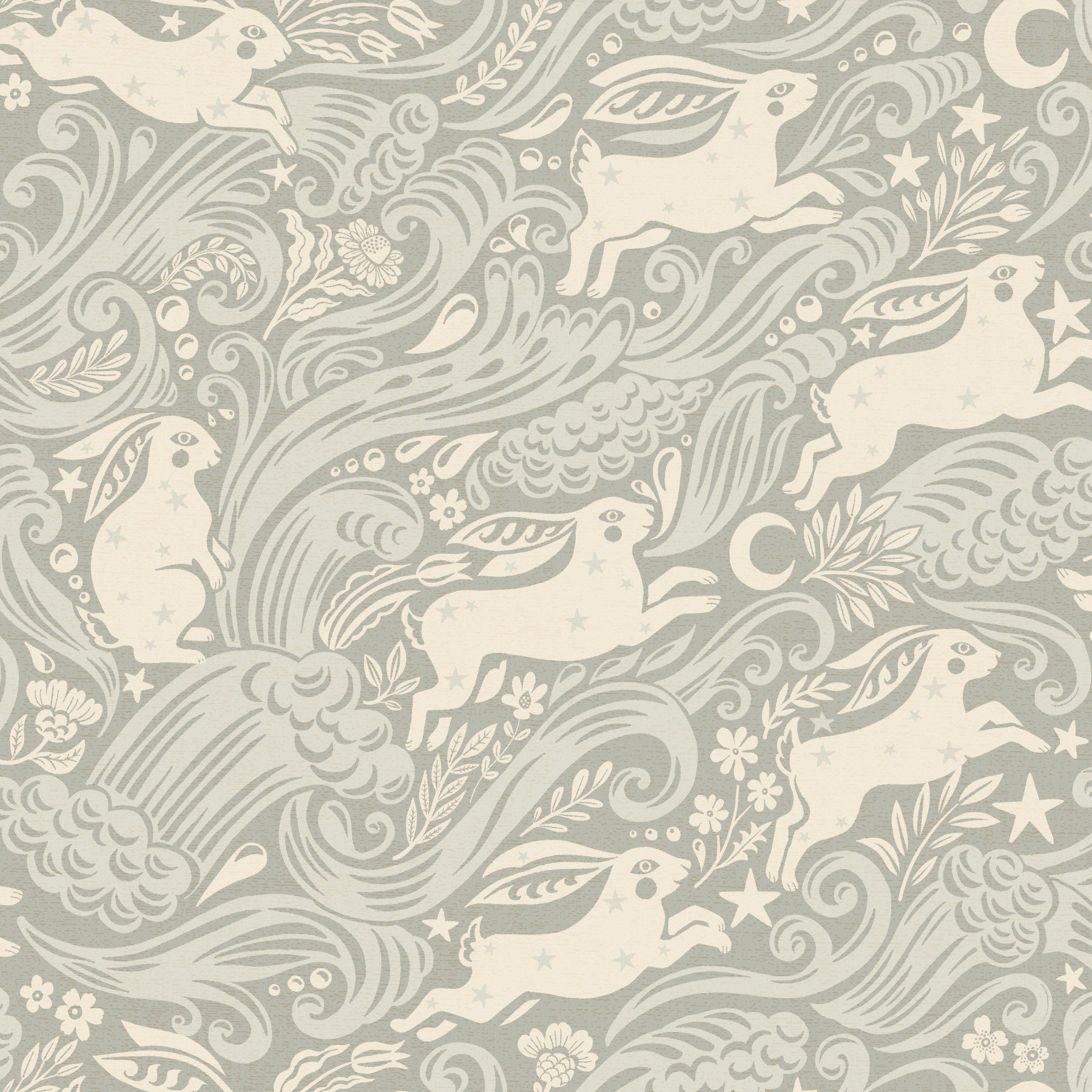 Silver rabbits and swirling clouds wallpaper