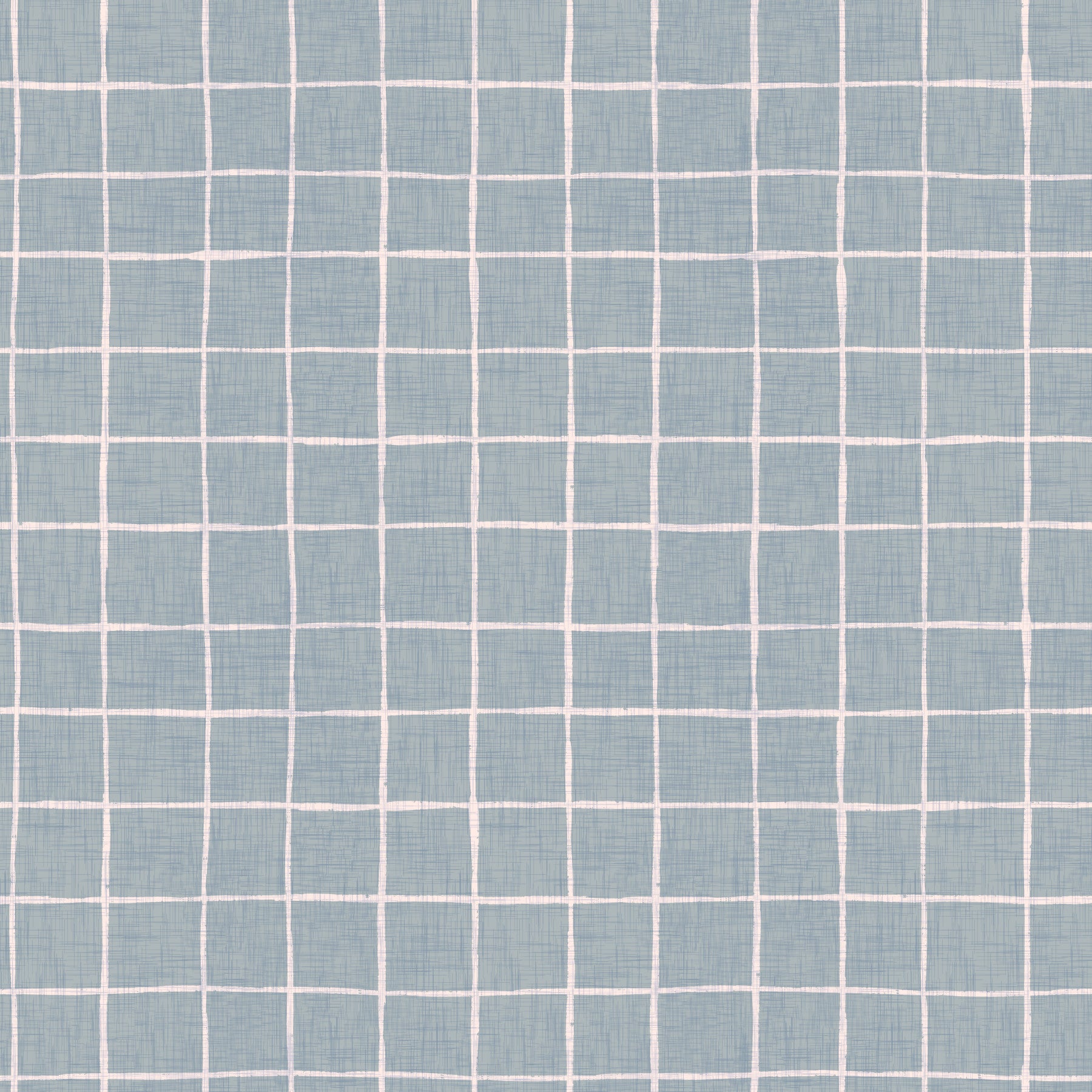Dusty blue grid wallpaper with linen fabric look