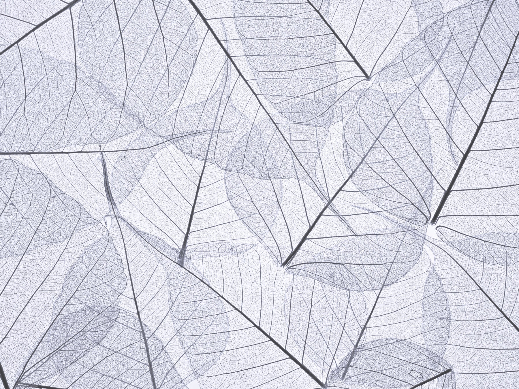 Skeleton leaves. Delicate and ethereal, 'Skeleton Leaves' unveils the intricate beauty found in nature's decay. This wallpaper presents a mesmerizing tapestry of translucent leaves, stripped bare to their skeletal framework of veins. The soft, muted color palette evokes a sense of quiet contemplation, making it ideal for spaces seeking a touch of natural serenity. Gaze into the detailed network of each leaf, a testament to nature's artistry and resilience. The overlapping layers create depth and visual interest, offering a subtle yet captivating backdrop for any digital screen. Add a touch of organic elegance to your device with this refined and understated design. Let the 'Skeleton Leaves' wallpaper bring a subtle reminder of the beauty found in impermanence and transformation.