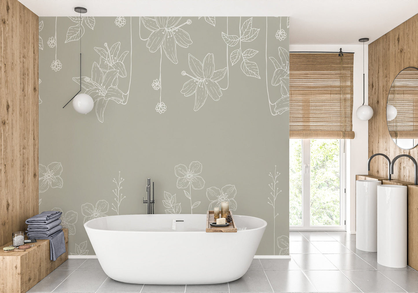 Sketch Garden Elegance Wallpaper mural for bathroom areas