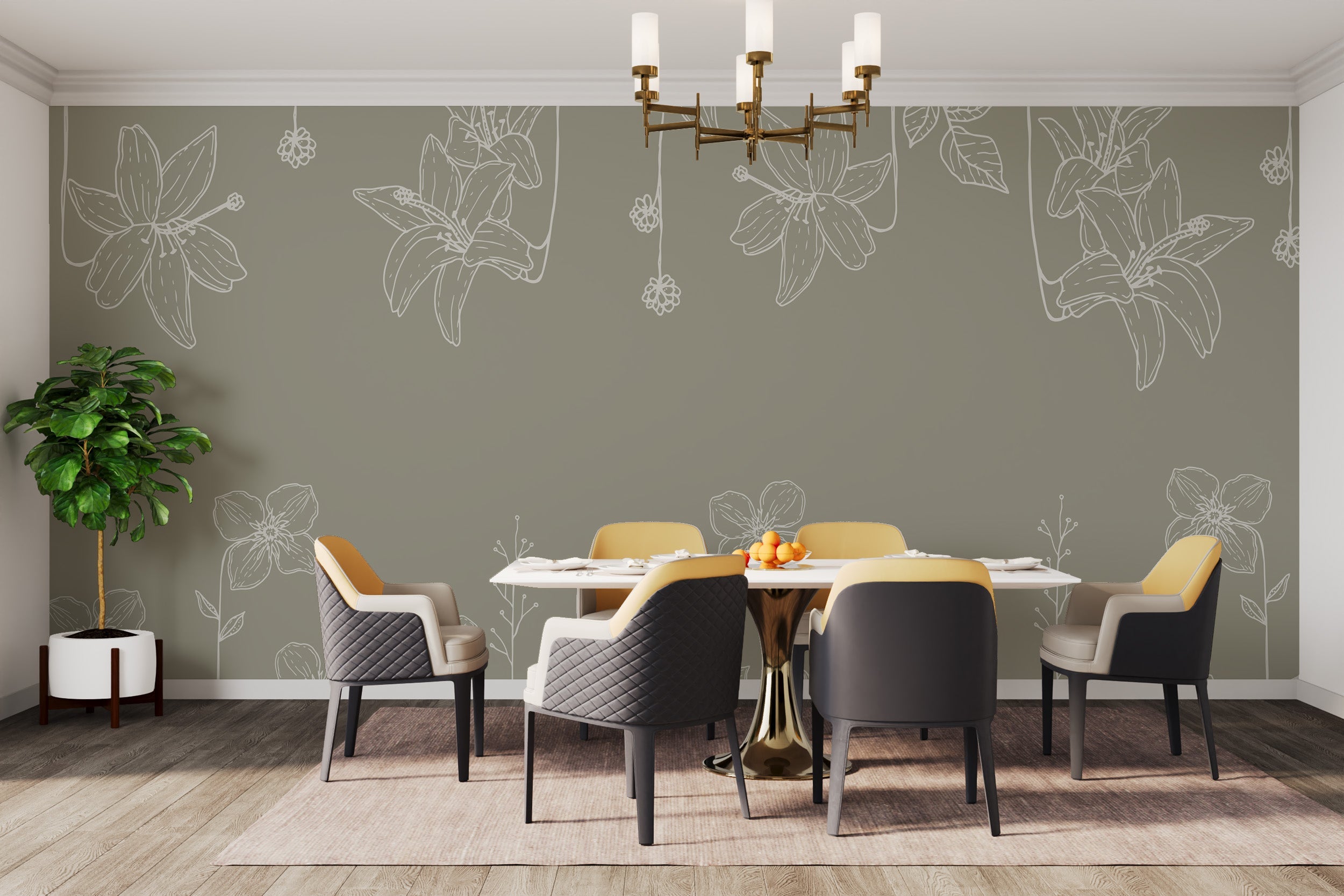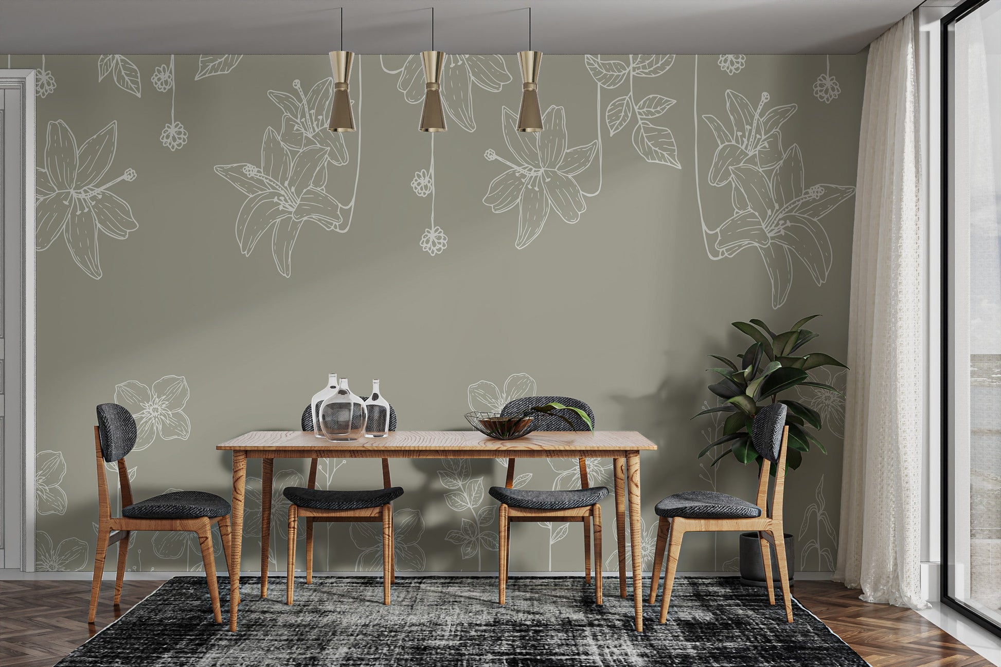 Botanical Sketch Garden Elegance Wallpaper mural style