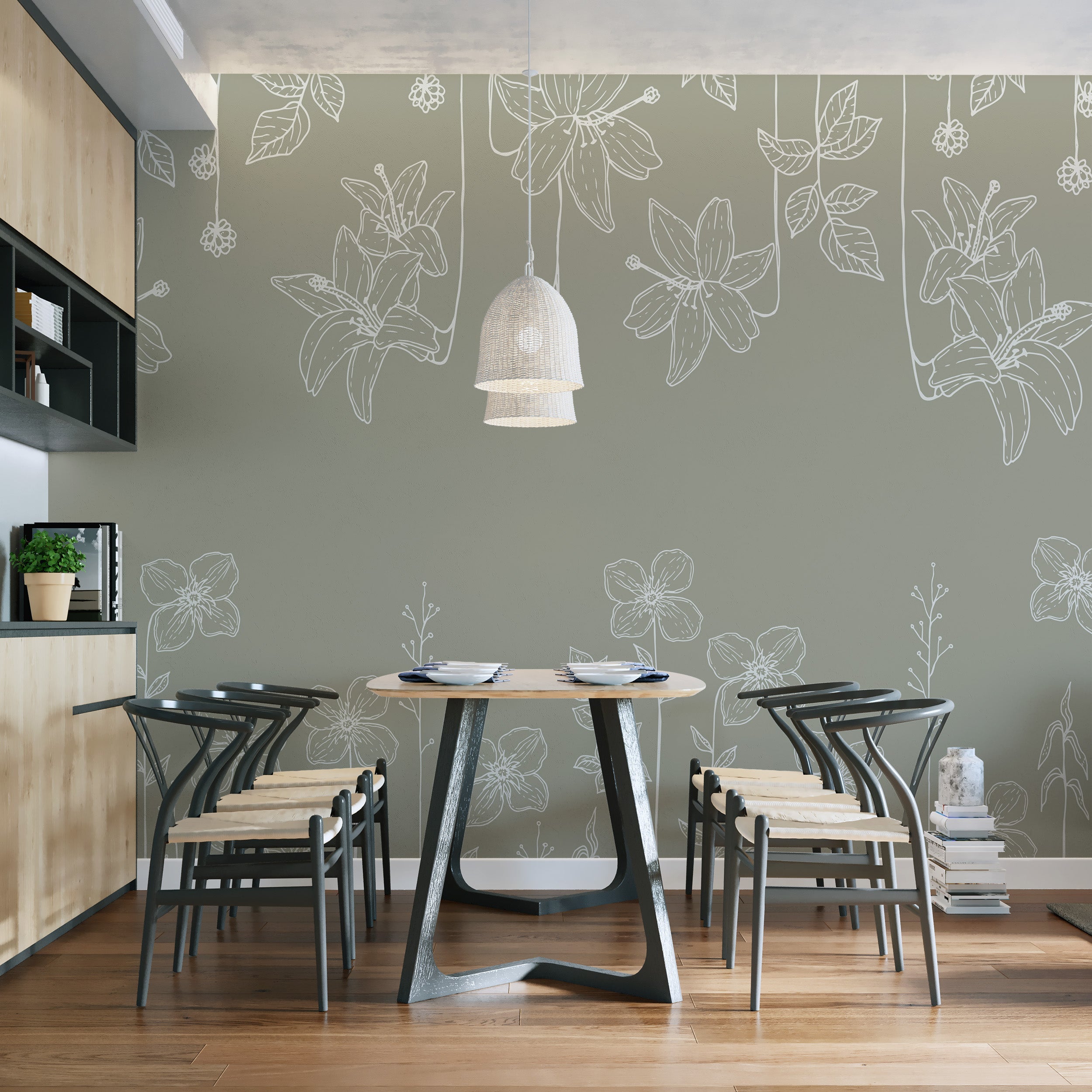 Embrace the subtle charm of the sketch garden elegance wallpaper mural, where delicate florals dance across a soothing green backdrop. This green color wallpaper captures the essence of a serene garden, with its hand-drawn flowers bringing a touch of nature's elegance indoors. Ideal for adding a botanical flourish to any room, this flower wallpaper is a testament to understated beauty. The light strokes and gentle hues craft a peaceful retreat in your home, inviting a breath of fresh air into your daily life. It's a mural that doesn't just decorate a wall but also weaves a story of natural grace, inviting viewers to pause and appreciate the artistry of the natural world. Let the sketch garden elegance wallpaper mural be the canvas that reflects your love for nature's exquisite simplicity.