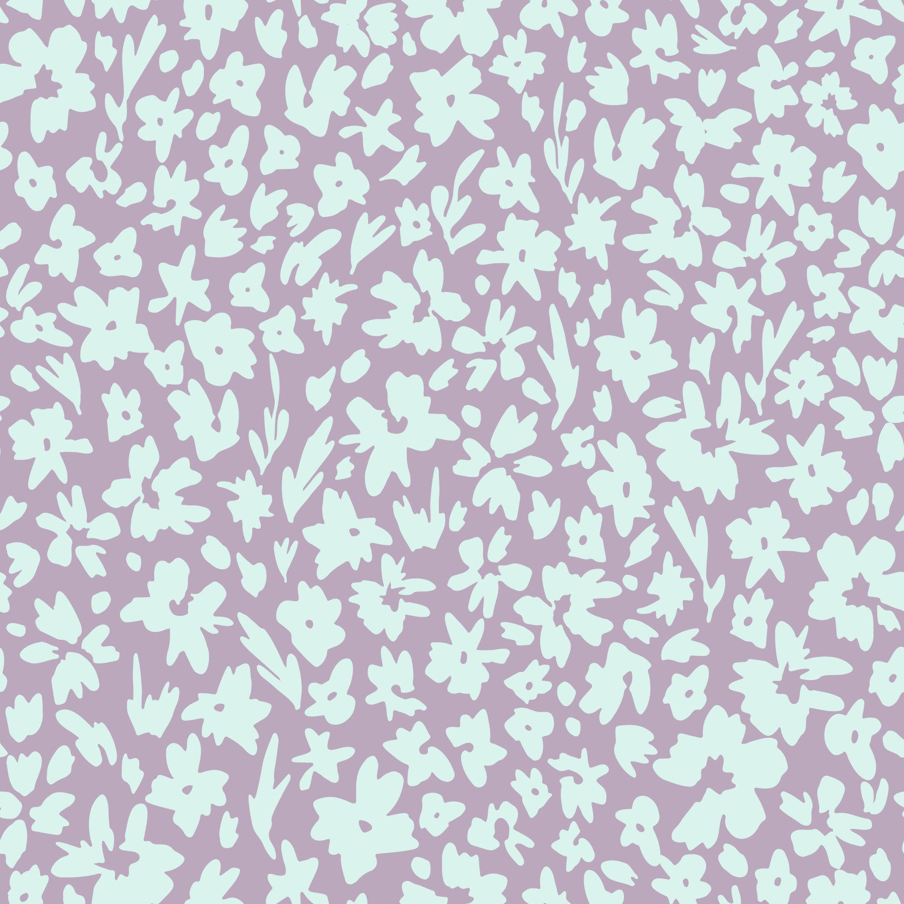 Transform your space with this beautiful meadow-inspired wallpaper for walls! A dense arrangement of abstract flowers dances across the surface. The cool mint and gentle lilac shade create a dreamy and ethereal aesthetic. It breathes life into any space, from nurseries to living rooms. It is a simple pattern, adding to its versatility. Complement modern, Scandinavian or cottage core interiors.