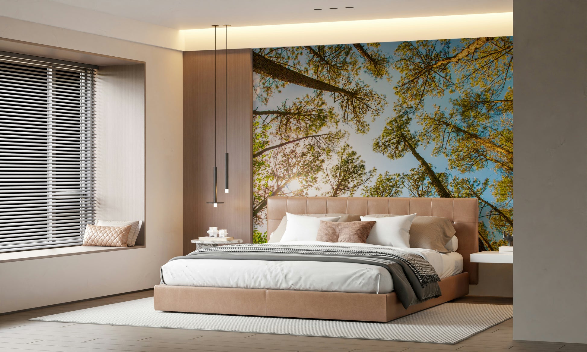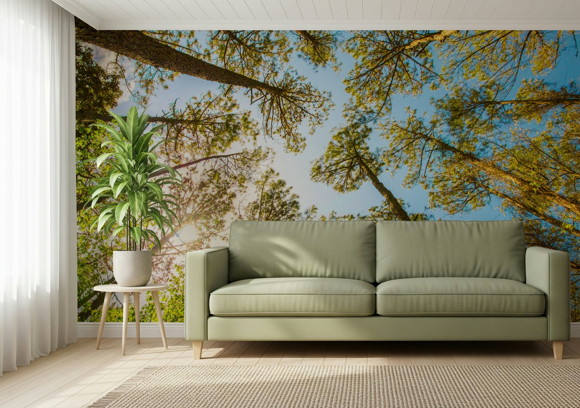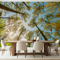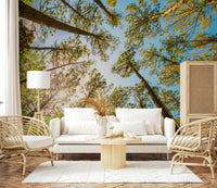 Bring nature indoors! This skyward trees wallpaper for walls adds serenity and a refreshing outdoor vibe to any living space.