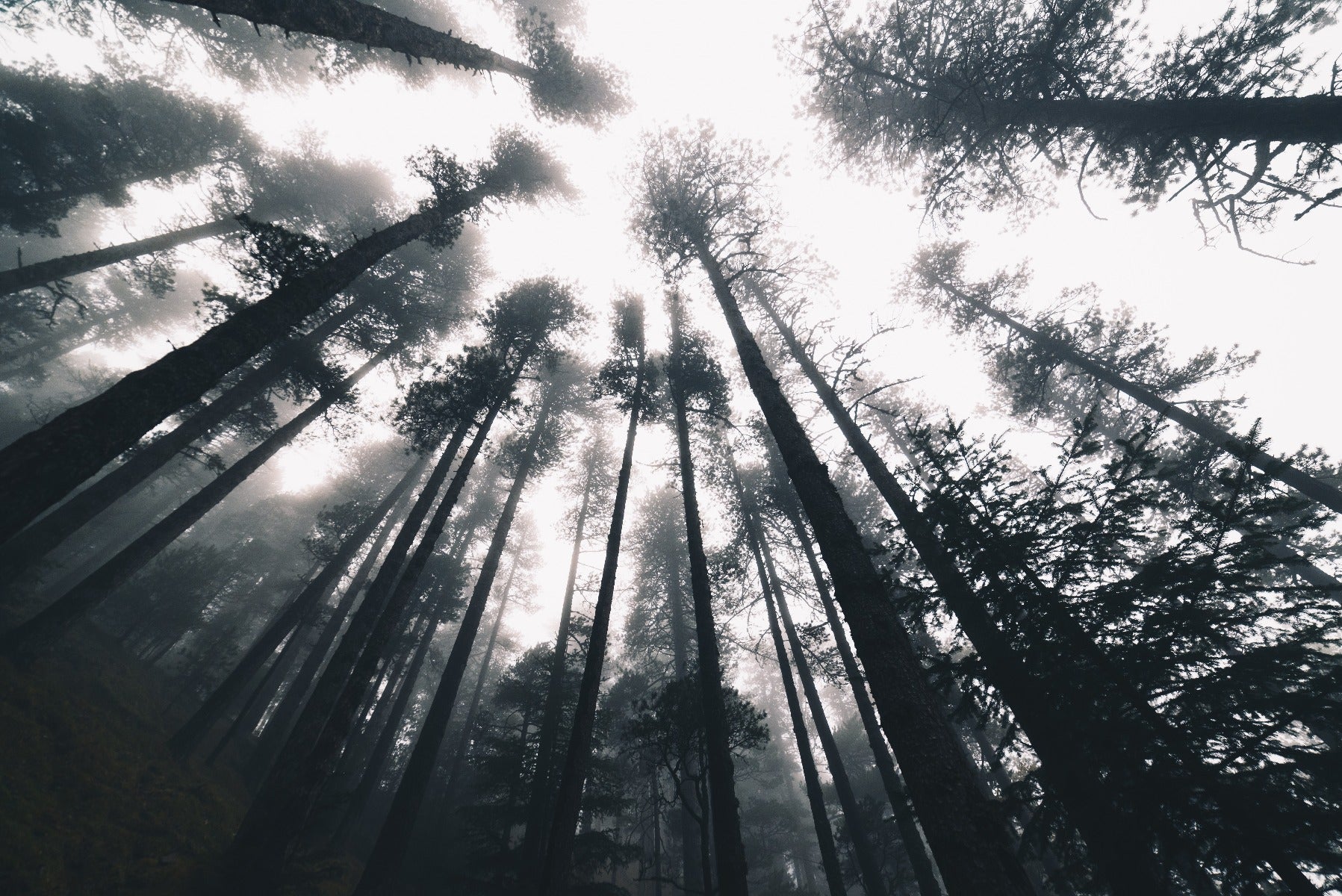 Our smokey treetop Halloween forest haunted wallpaper mural will make your home look better by capturing the spooky beauty of foggy trees. This design gives off a creepy vibe, great for people who like the supernatural.