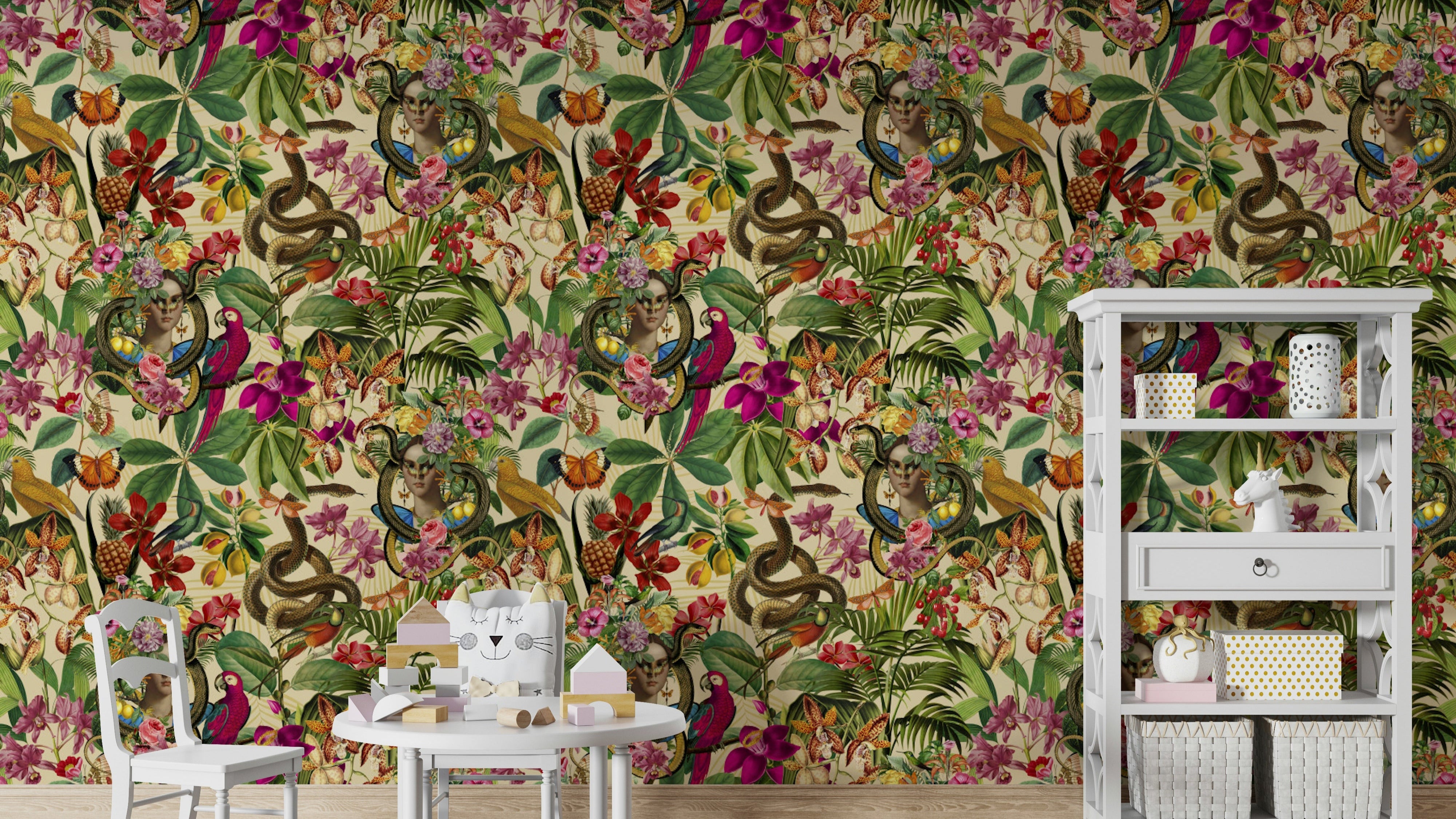 Snake Princess Whimsical Botanical Collage Wallpaper
