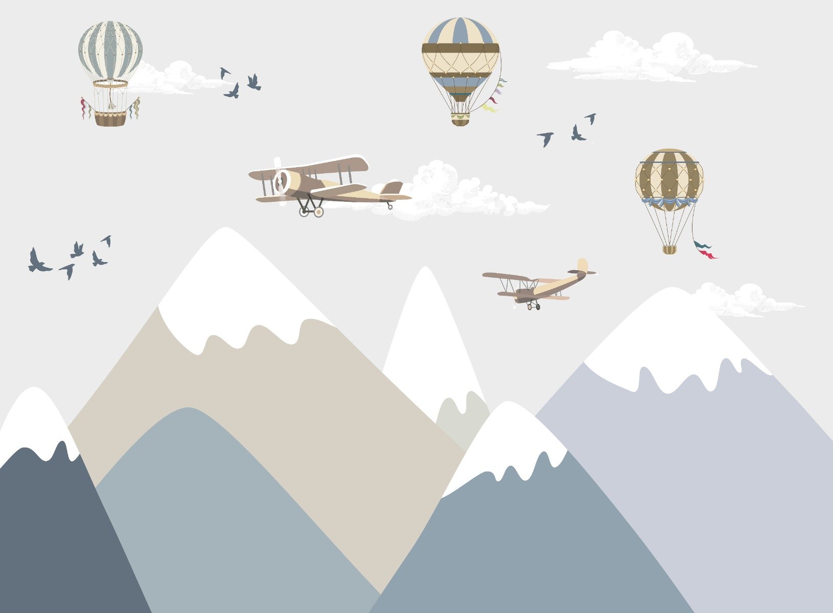 Mountains and Sky Kids Wallcovering makes a dreamy, explorative room ideal for young adventurers. Beautiful paintings of snow-covered mountains, flying airplanes, and ballooning show up against a dreamy sky and elicit imagination and curiosity. When used in a subtle colour scheme, it can be unified with any decor style while creating a delightful air of whimsy and relaxation that is happy in a nursery, playroom, or bedroom. Made from premium materials, this provides strength and ease of upkeep, so it remains a lasting part of your child's environment. This charming and interactive wallpaper design gives their room the feel of a magical world of discovery and play.