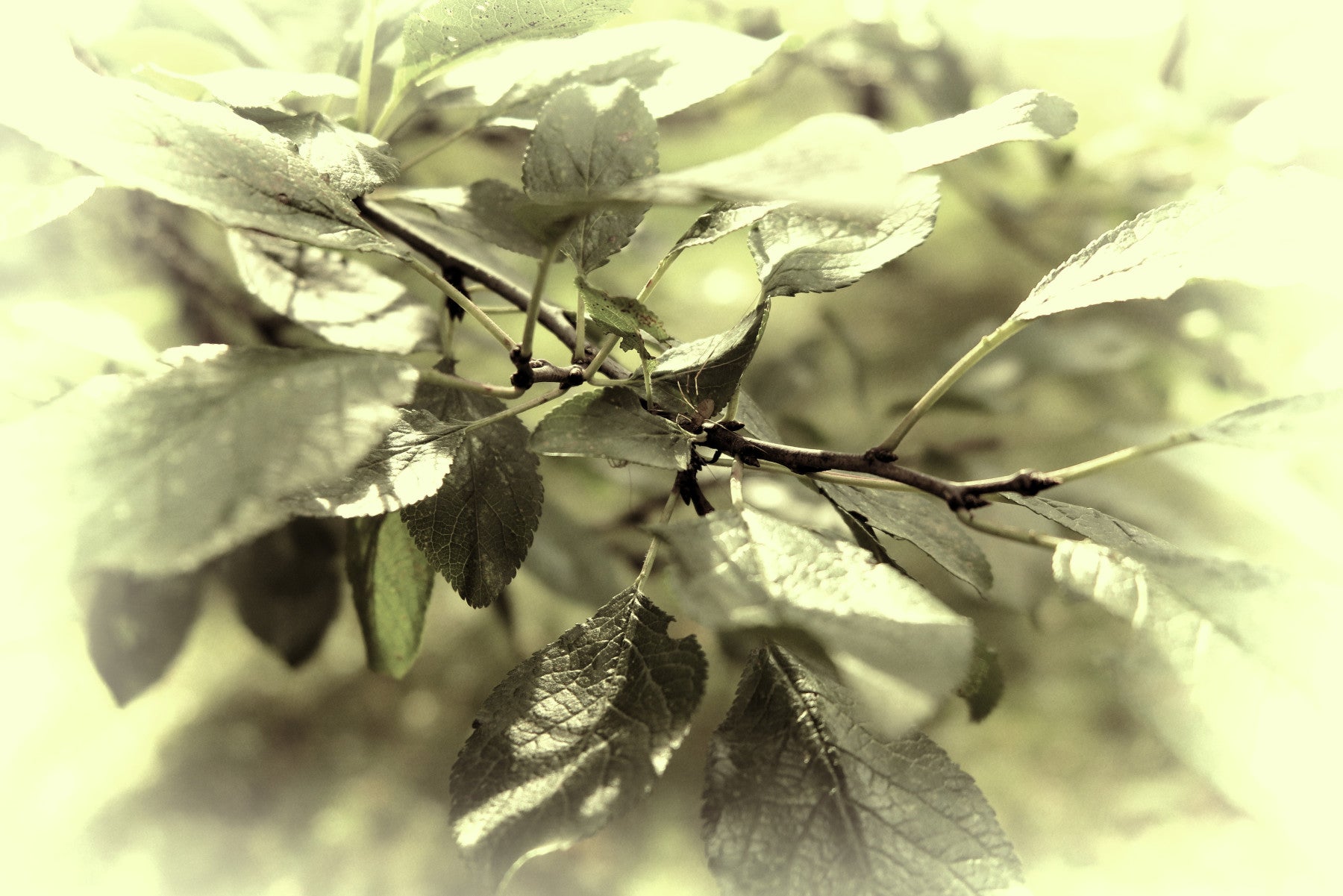Subtle hues of green and natural light.
