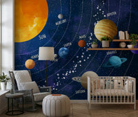 Embark on an interstellar journey with this captivating wall décor piece, titled 'Solar System Adventure'. The design showcases a whimsical yet informative rendition of our solar system, set against a backdrop of deep indigo sprinkled with stars. From the radiant sun blazing in vibrant orange, to the icy depths of Neptune in shades of purple, each planet is carefully rendered with its own distinctive colors and textures. Saturn's majestic rings, Jupiter's swirling storms, and the rugged terrain of Mars are all brought to life in delightful detail. Dotted lines illustrate the orbital paths, guiding the eye on a cosmic voyage. The asteroid belt adds texture. Spark imagination and wonder with this charming depiction of the universe, a perfect addition for any room seeking a touch of cosmic exploration.