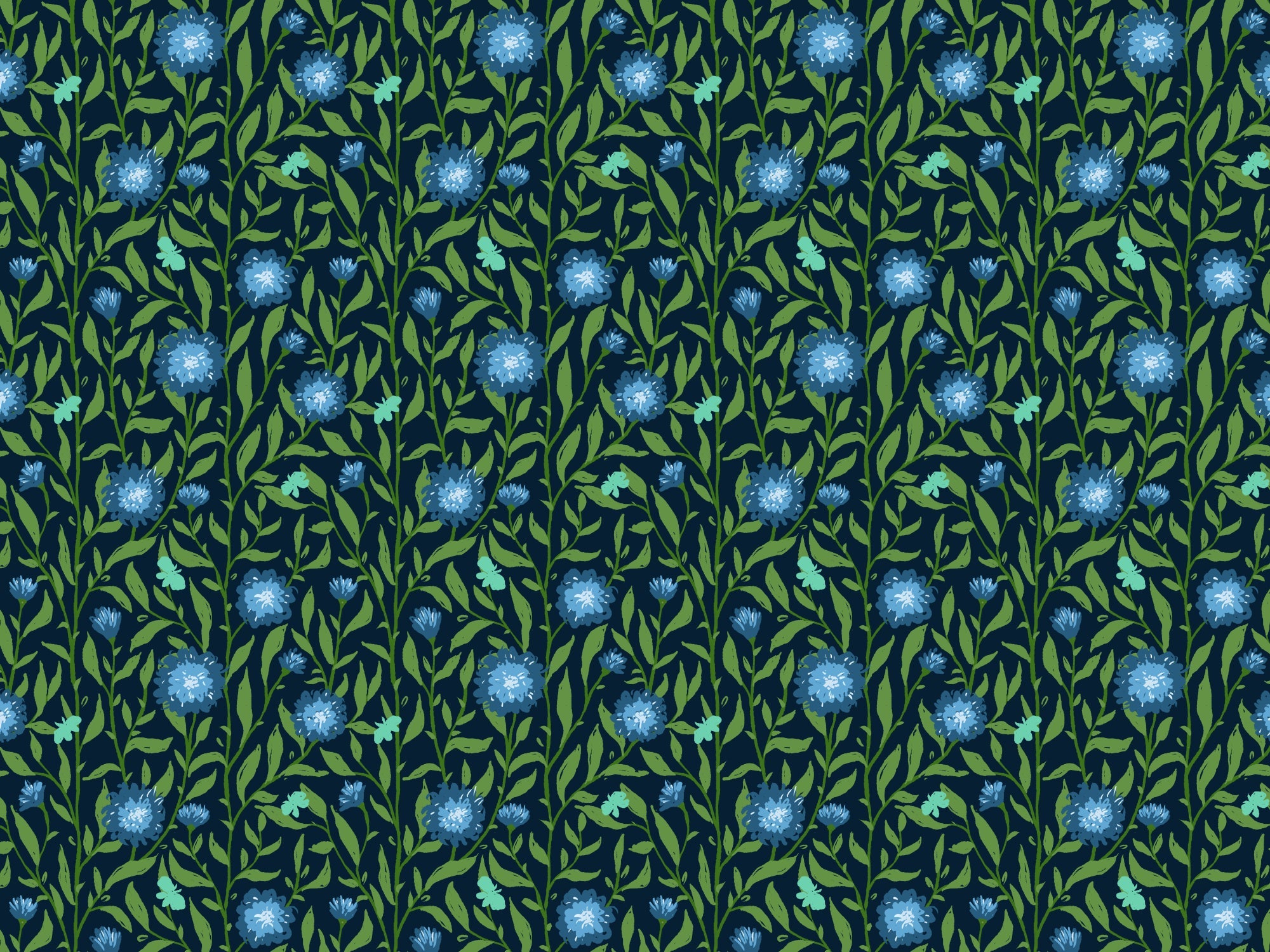 Bring a hint of the beauty of nature into your home with this botanical spring trellis wallpaper. This elegant wallpaper showcases a majestic pattern of intricate blue blossoms paired with rich green leaves on top of an ebony background. The combination of the dark and light colours gives a feeling of depth, which makes these dynamic pieces perfect for any room that demands to make an impact. Hang it in your living room, bedroom, or office for a wallpaper that imbues depth and personality into any wall. Get the Botanical Spring Trellis Wallpaper here and make your walls bloom this upcoming season!