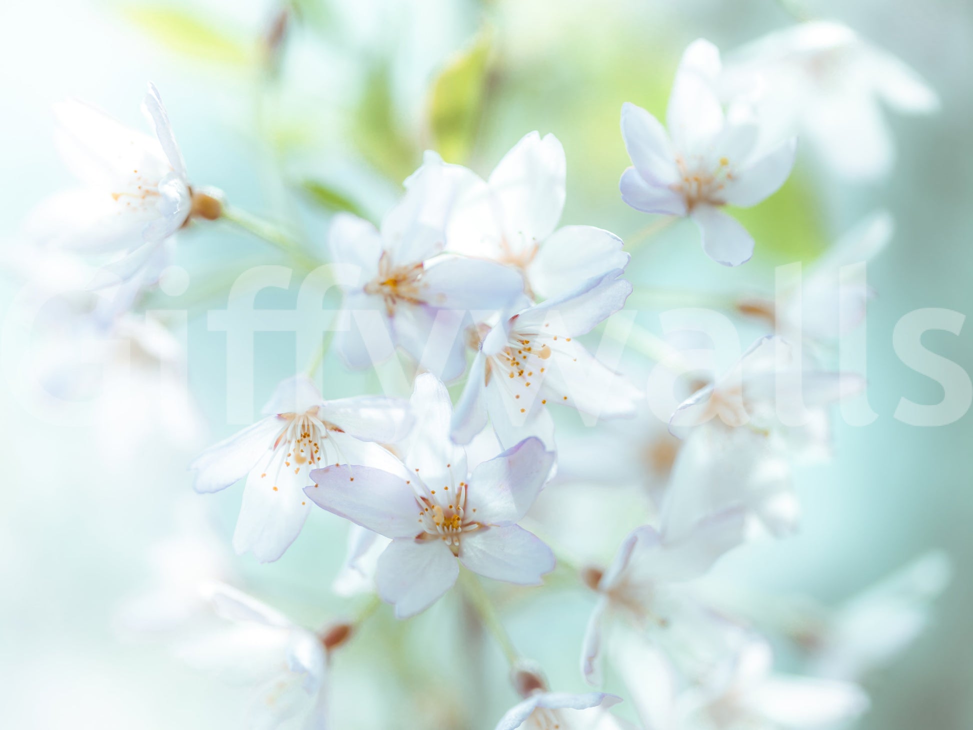 Blossom flowers in springtime. Embrace the delicate beauty of springtime with this serene wall décor. 'Springtime Blossoms' captures the ephemeral charm of cherry blossoms in full bloom, transforming your space into a tranquil sanctuary. The soft, ethereal light illuminates the pristine petals, each one meticulously rendered to showcase its intricate details. Hues of pastel blues and greens blend seamlessly, evoking a sense of calm and renewal, as the vibrant oranges and yellows of the blossoms' centers add pops of warmth. Allow the gentle composition and calming palette to create a soothing ambiance, perfect for bedrooms, living rooms, or any space where you seek to cultivate a sense of peace and natural beauty. Bring the invigorating essence of springtime indoors and let your walls bloom with understated elegance.