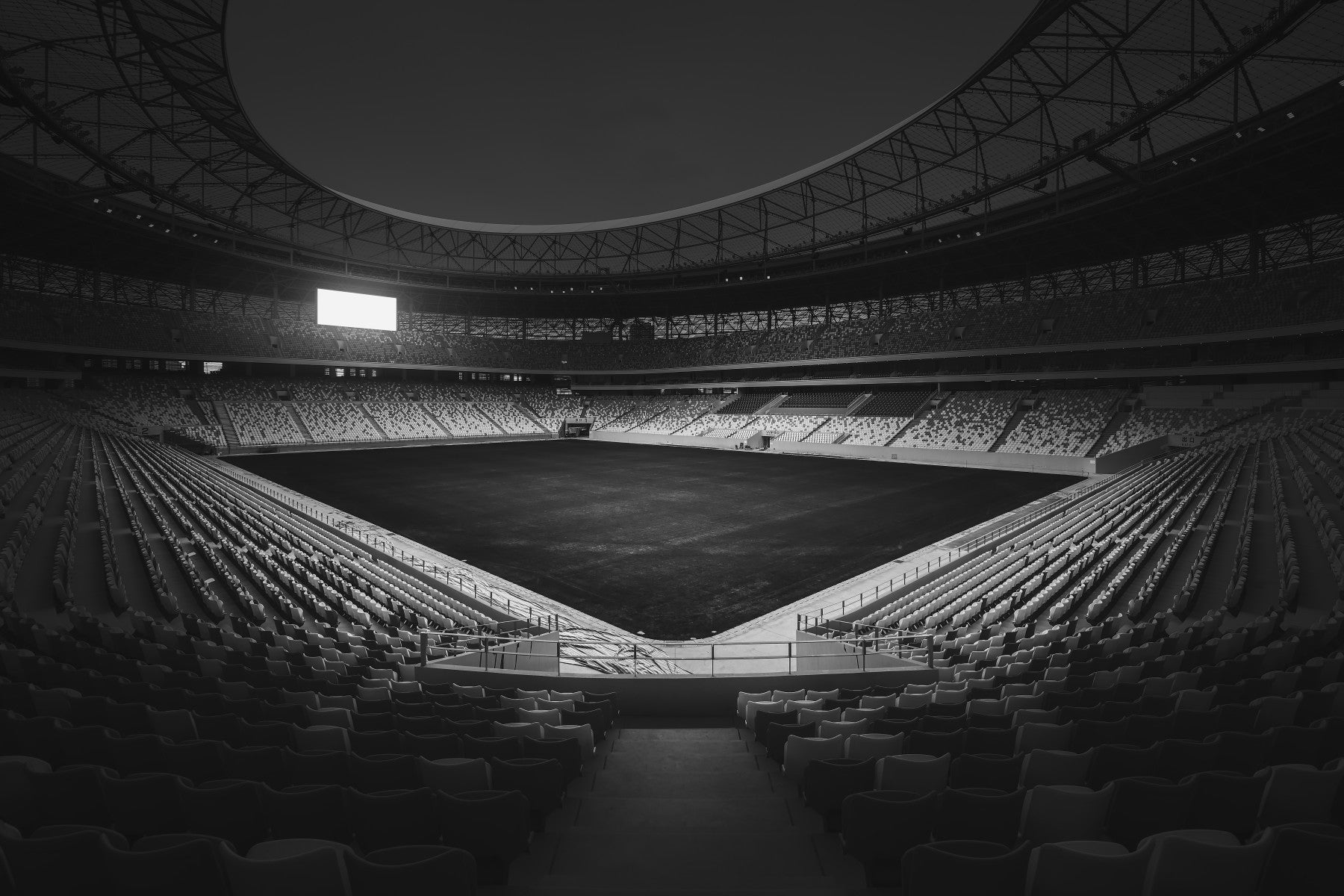 A beautiful panoramic stadium wallpaper mural in black and white.