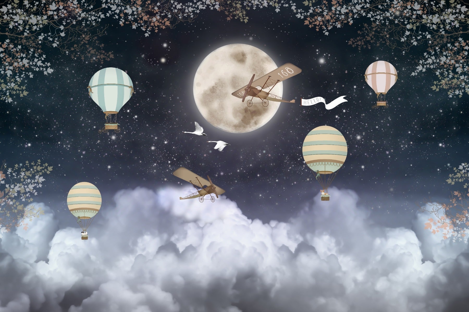 Transform your child's bedroom into a magical hideaway with the Night Sky Balloon Adventure Wallpaper Mural with dreamy hot air balloons soaring among glittering stars and fluffy clouds. This dreamlike kids' wallpaper evokes curiosity and fun and will serve well in nurseries, playrooms, or bedrooms. The relaxing color scheme and fun design promote creativity and a serene atmosphere that blends harmoniously with all styles of decor. Made with good quality materials, it is both durable and easy to apply, and it delivers a smooth finish. Turn any space into a magical nighttime trip, and it will be the ideal setting for your little pioneer's imagination to take flight.